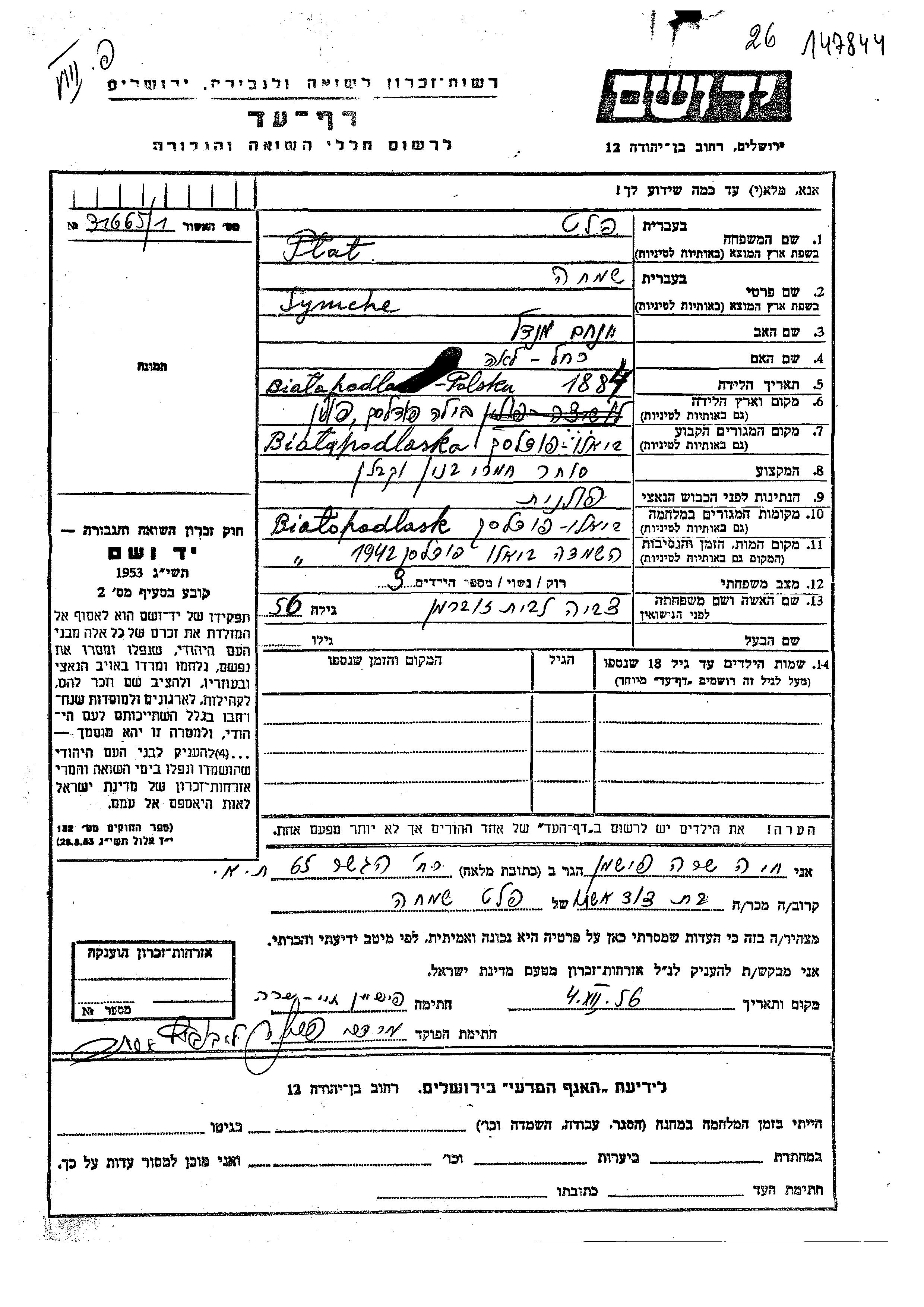 Symche a été assassiné pendant la Shoah. Lieu de la mort: Biala Podlaska, Pologne en 1942.