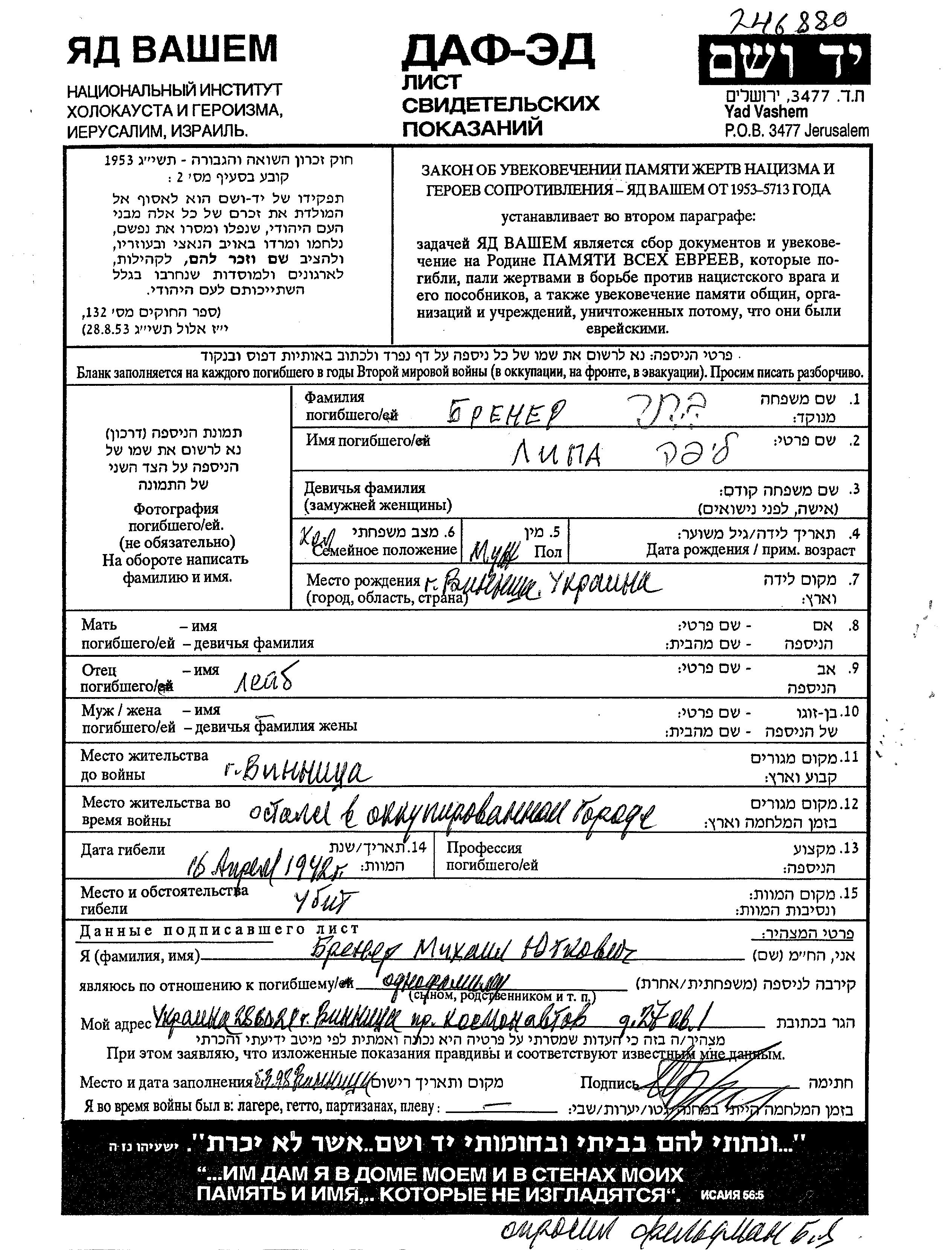 Yad Vashem - Pages of Testimony Names Memorial Collection