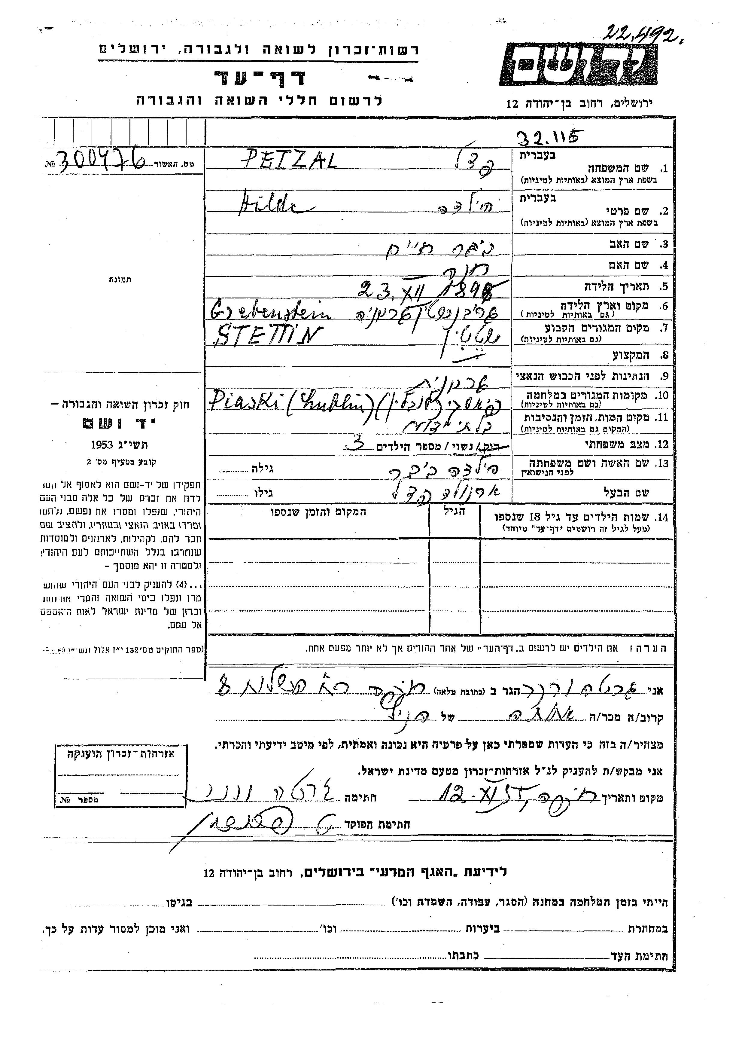 Yad Vashem - Pages of Testimony Names Memorial Collection