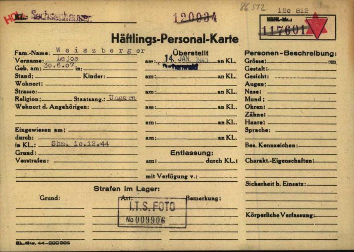 Weiszberger Lajos 1907 endroit inconnu, Fichier de ITS