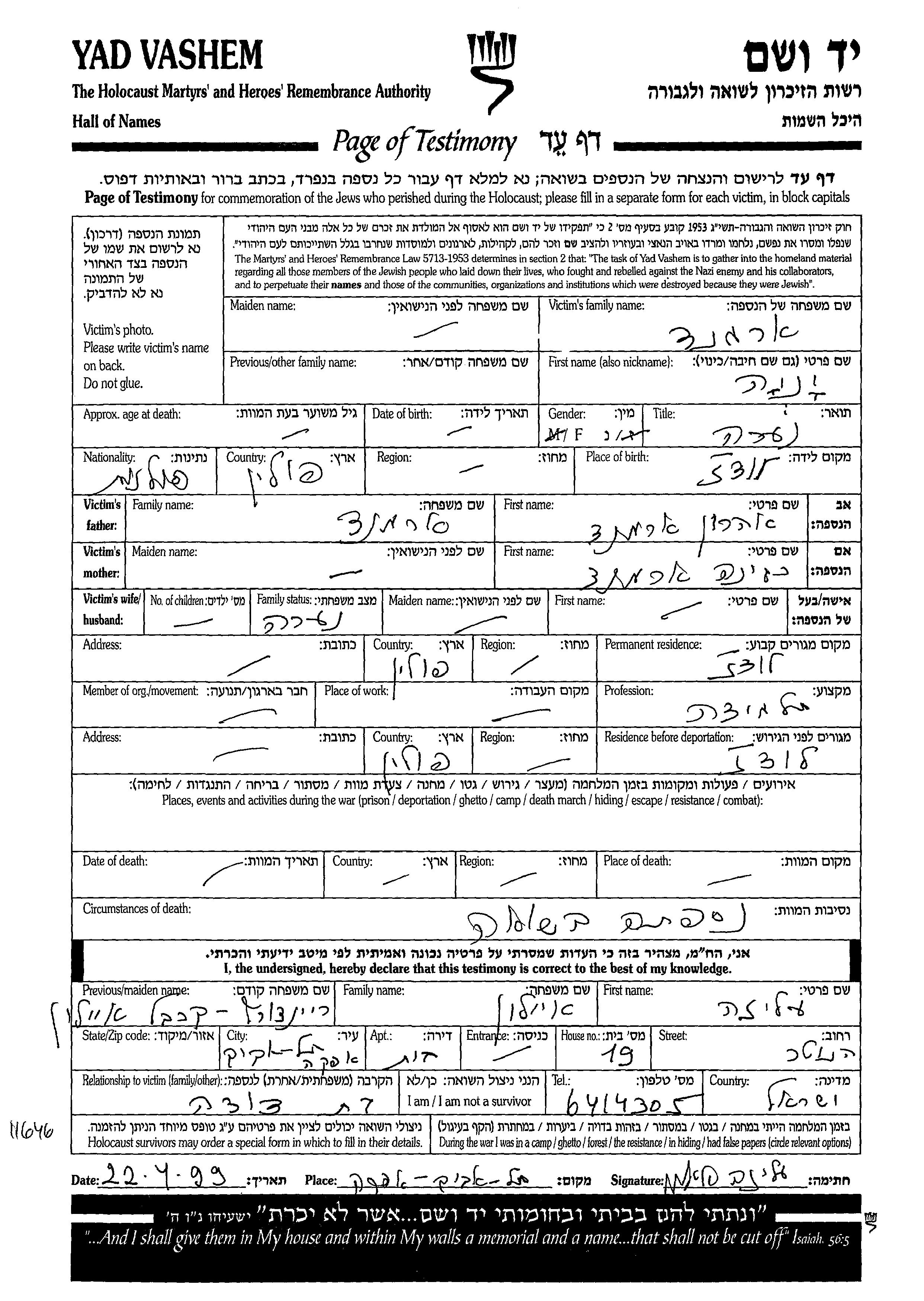 Yad Vashem - Pages of Testimony Names Memorial Collection