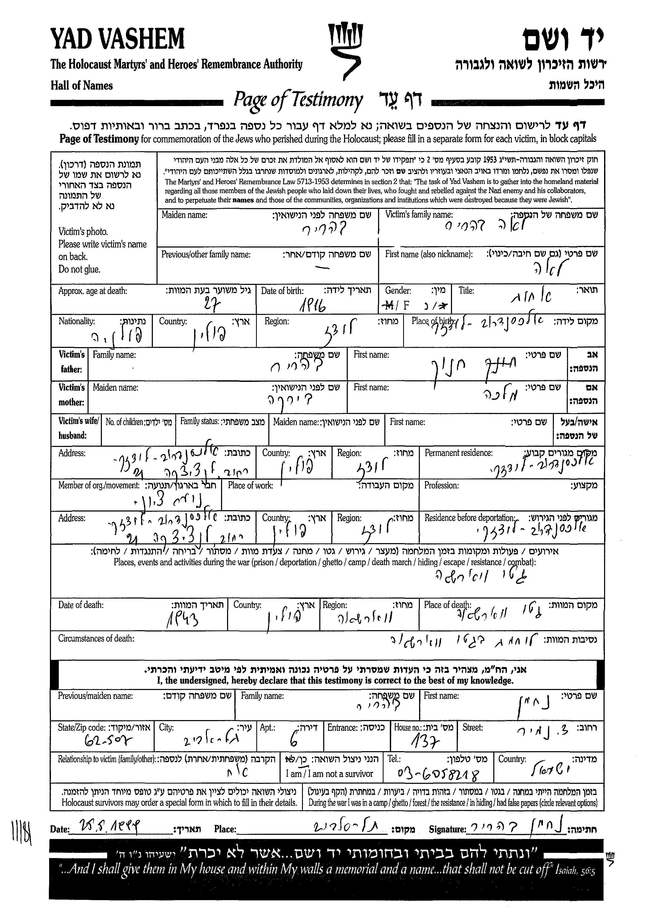 Recherche par date de la mort pendant la période de la Shoah: 1933-1945. Sélectionnez 'Exact'; dans la liste pour rechercher l'année exacte, ou sélectionner '+/- 2 ans'; ou '+/- 5 ans