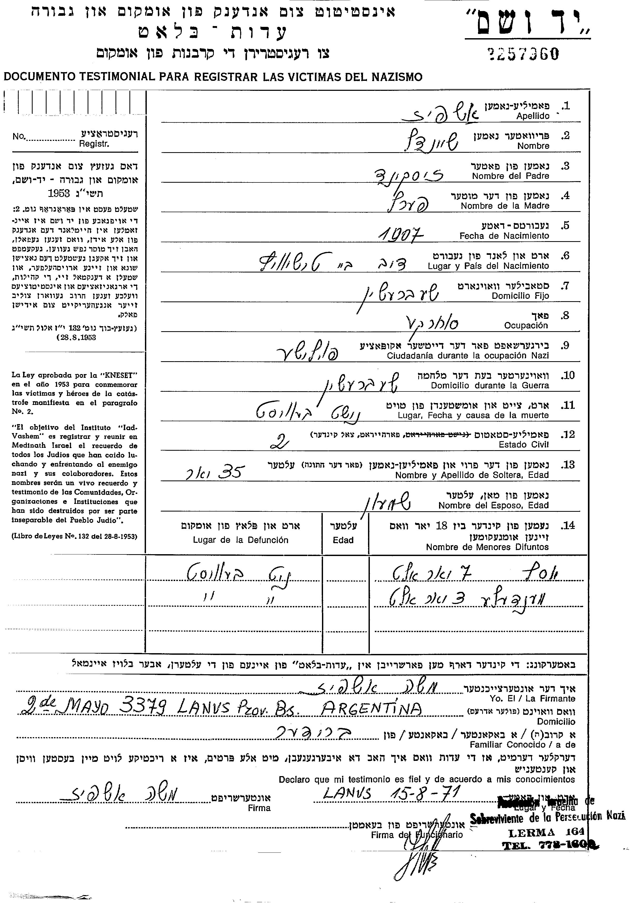 Yad Vashem - Pages of Testimony Names Memorial Collection