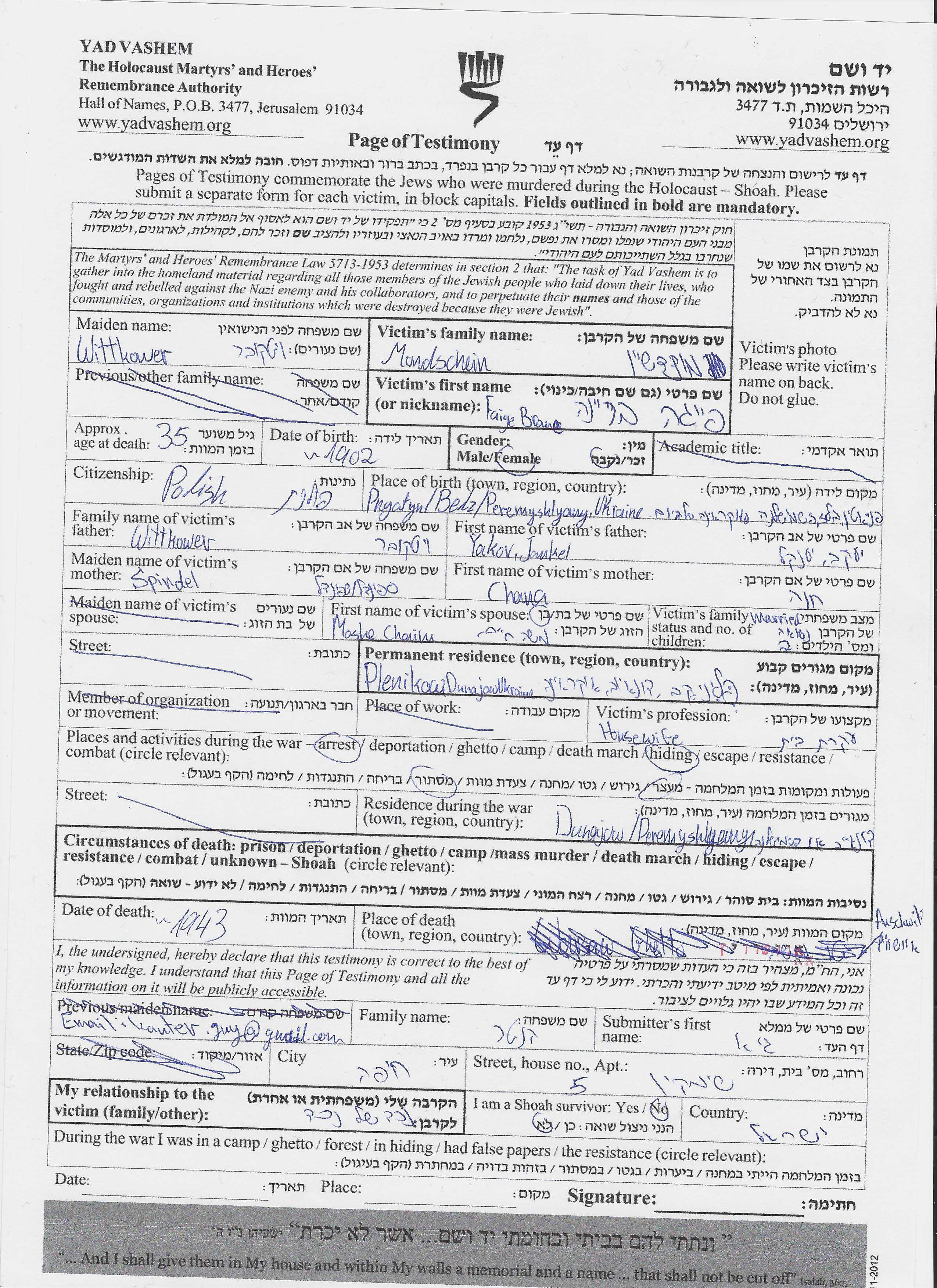 Yad Vashem - Pages of Testimony Names Memorial Collection