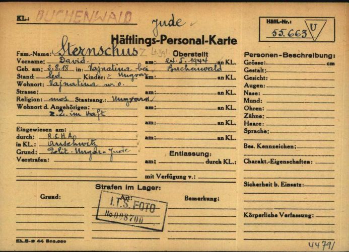 David Sternschuss est né à Vojnatina, Tchécoslovaquie en 1918. Avant la seconde guerre mondiale il vivait à Vojnatina, Tchécoslovaquie.