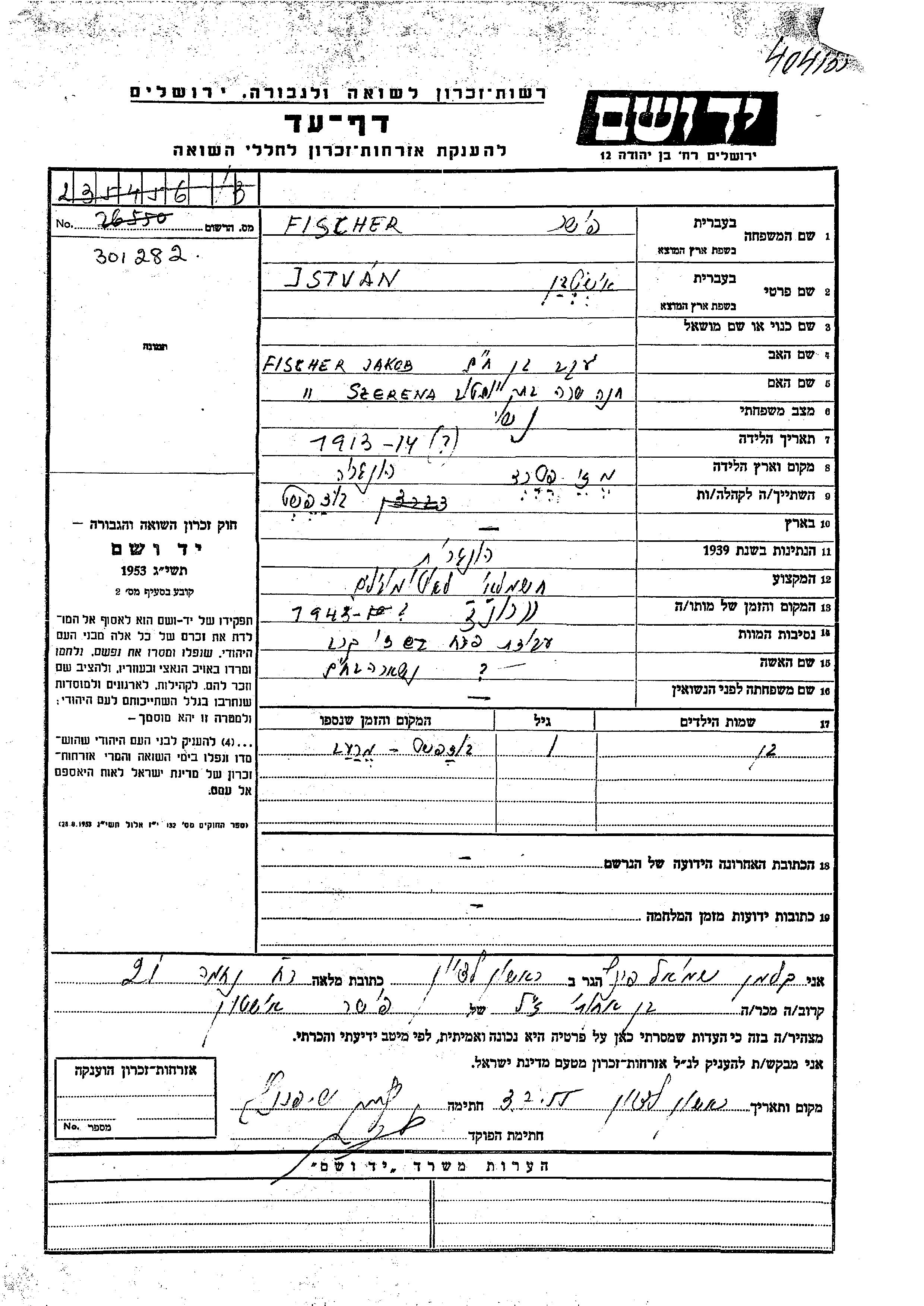 Fischer Ishtvan 1913 Budapest, Hongrie Feuille de témoignage