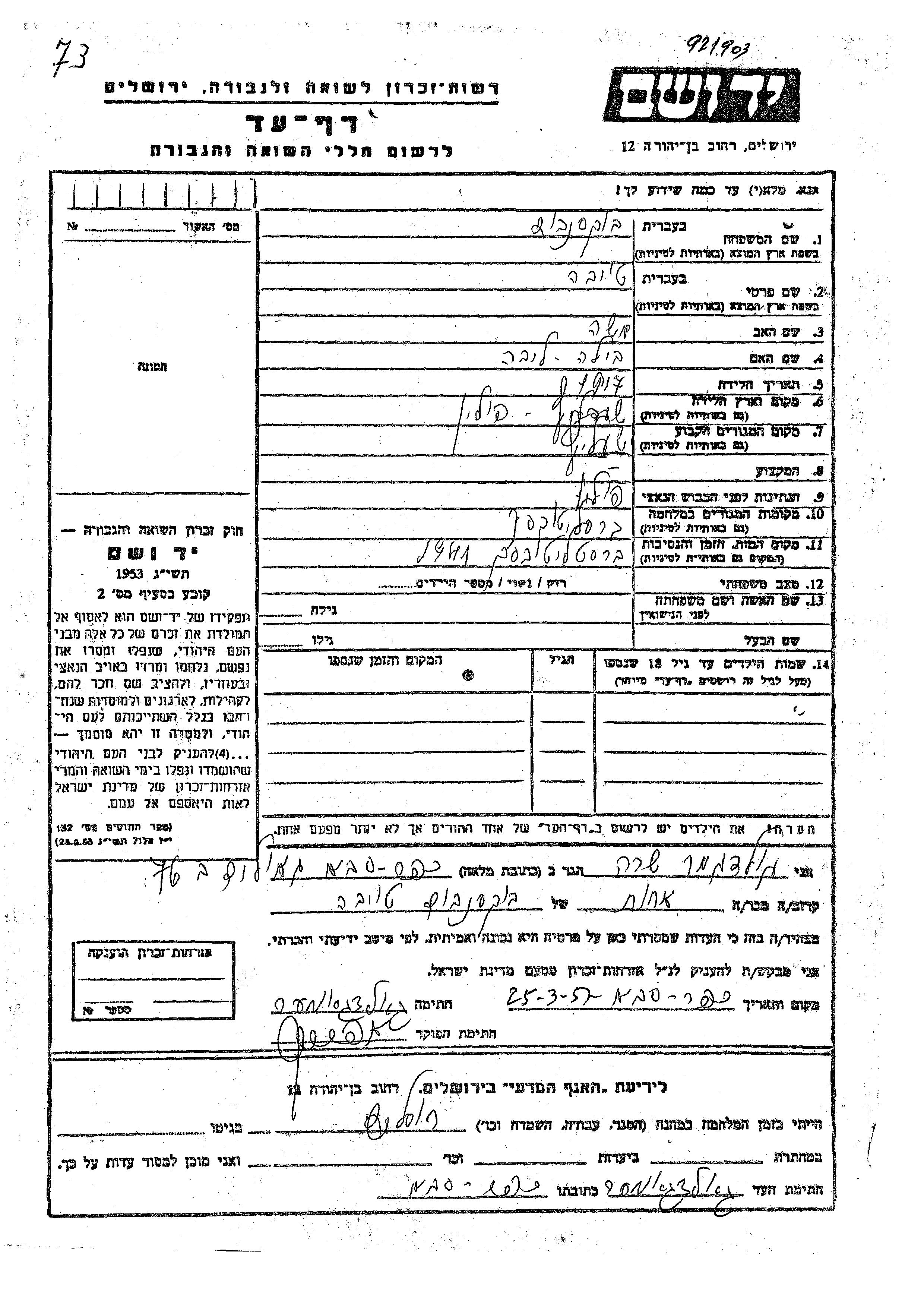 Yad Vashem - Pages of Testimony Names Memorial Collection