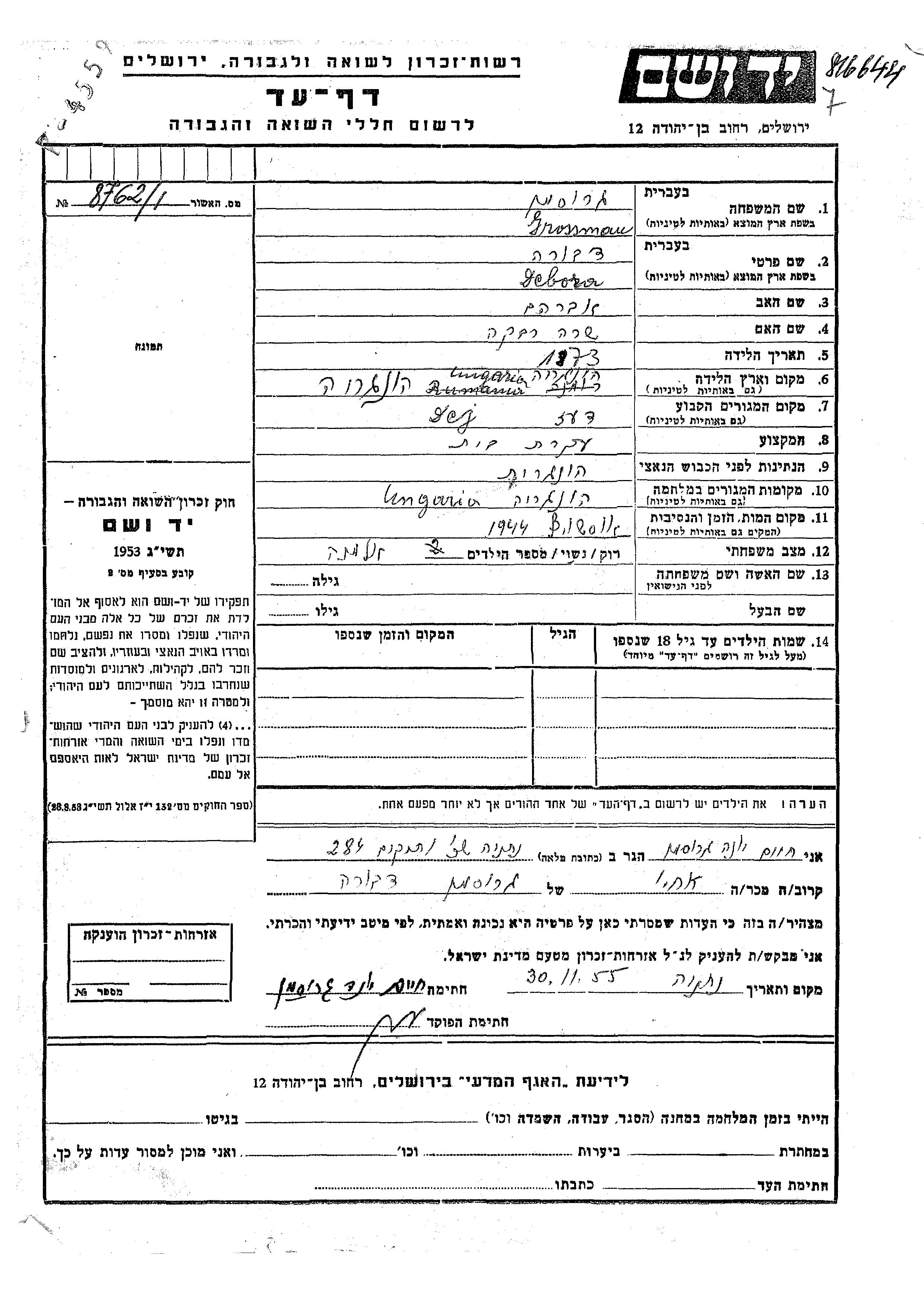 Yad Vashem - Pages of Testimony Names Memorial Collection