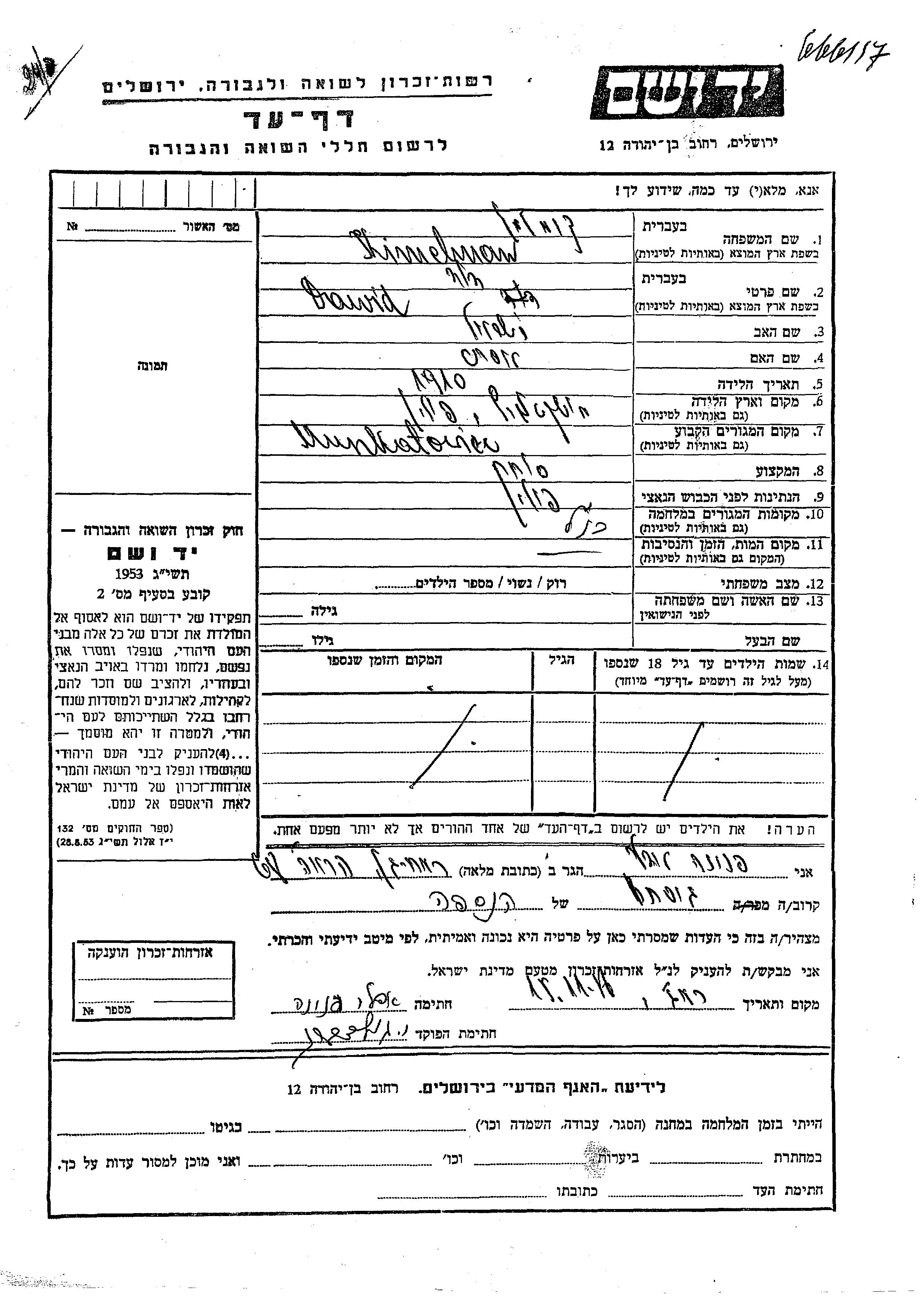 Yad Vashem - Pages of Testimony Names Memorial Collection