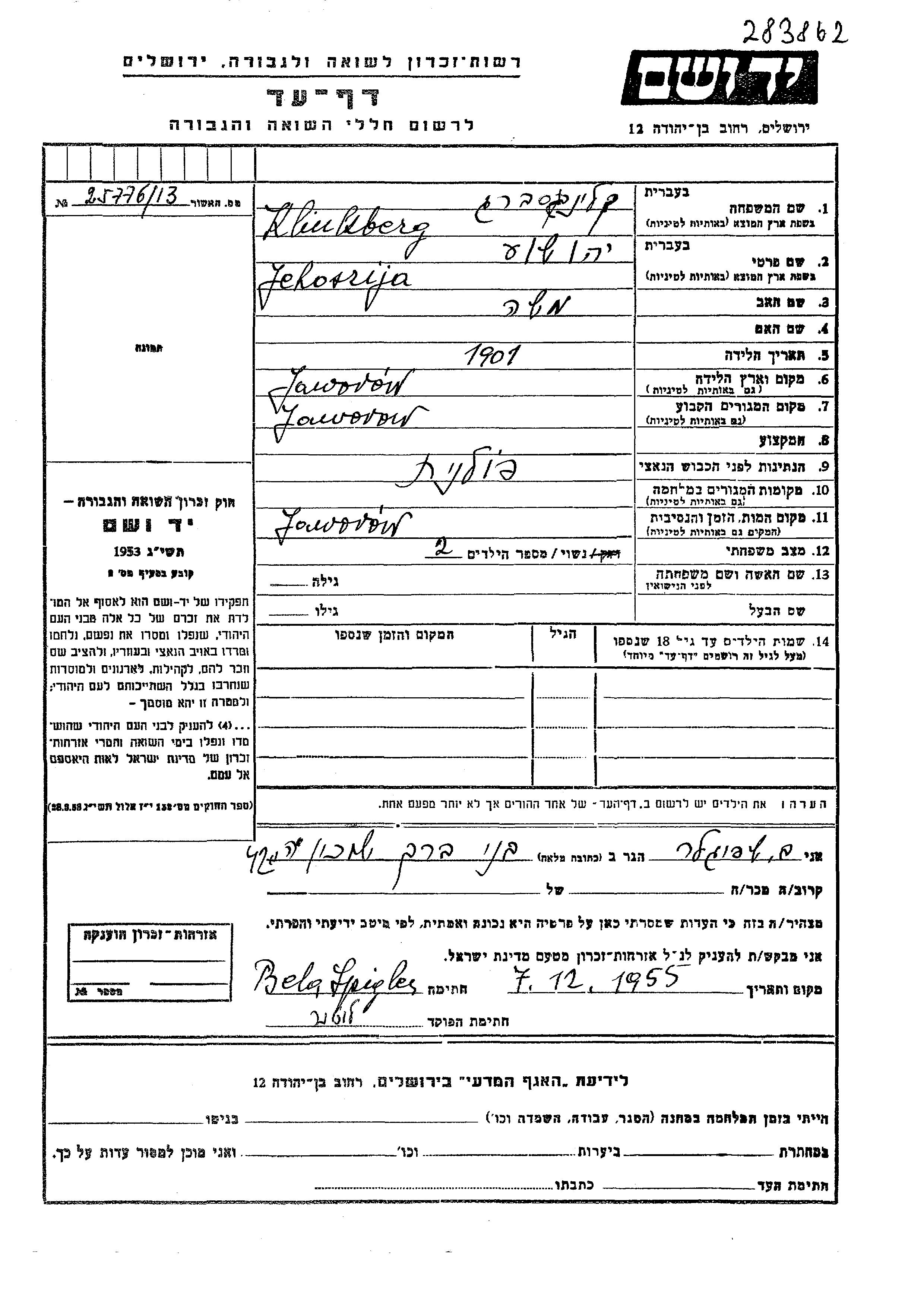 Yad Vashem - Pages of Testimony Names Memorial Collection