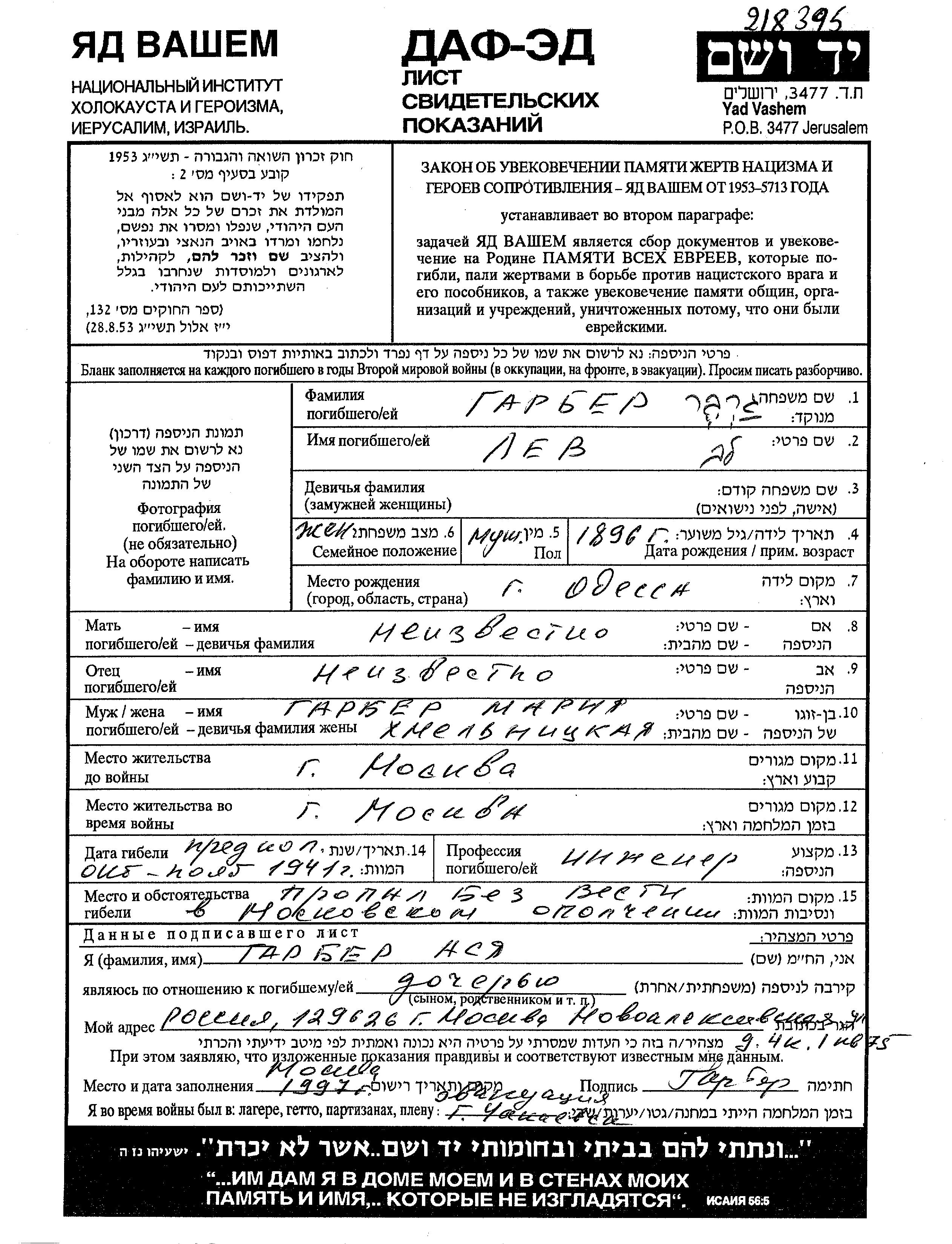 Yad Vashem - Pages of Testimony Names Memorial Collection
