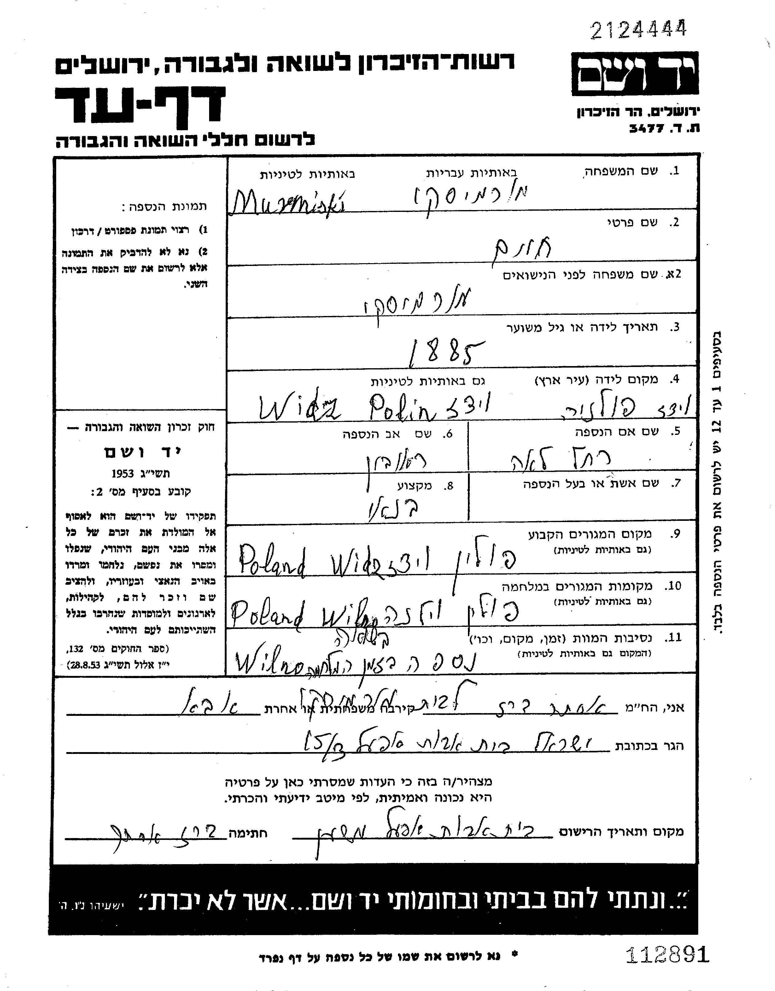 Yad Vashem - Pages of Testimony Names Memorial Collection