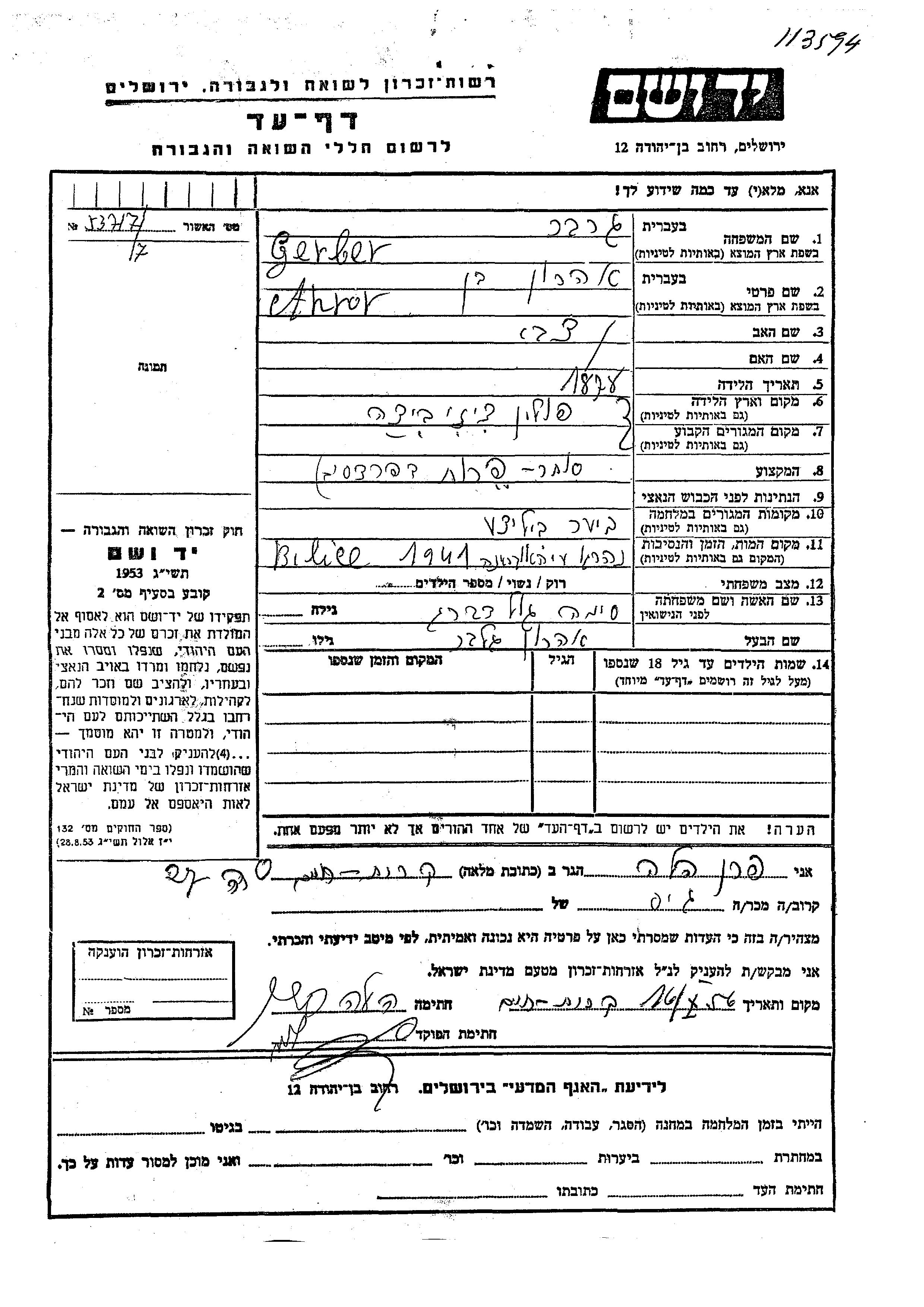 Yad Vashem - Pages of Testimony Names Memorial Collection