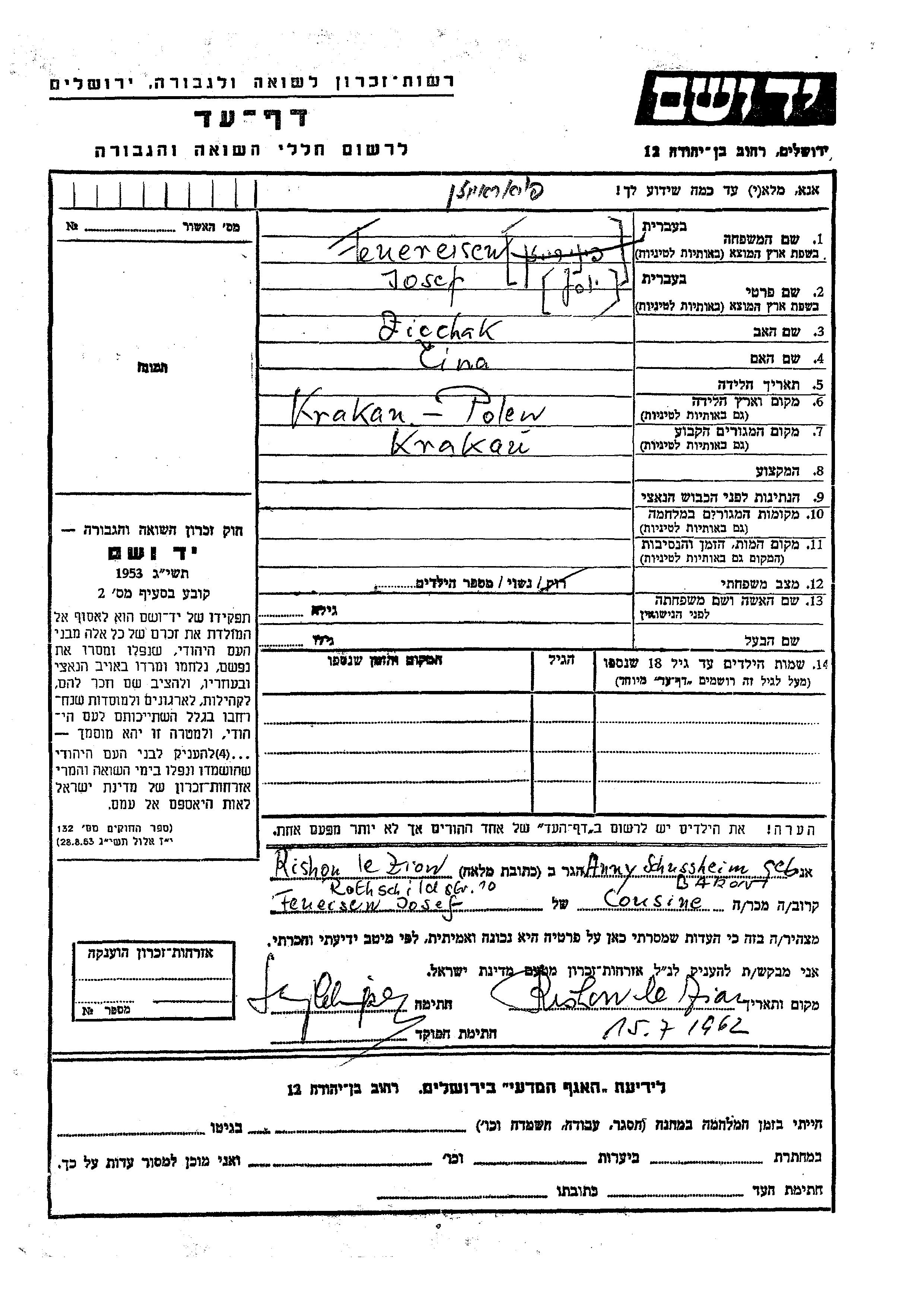 Yad Vashem - Pages of Testimony Names Memorial Collection