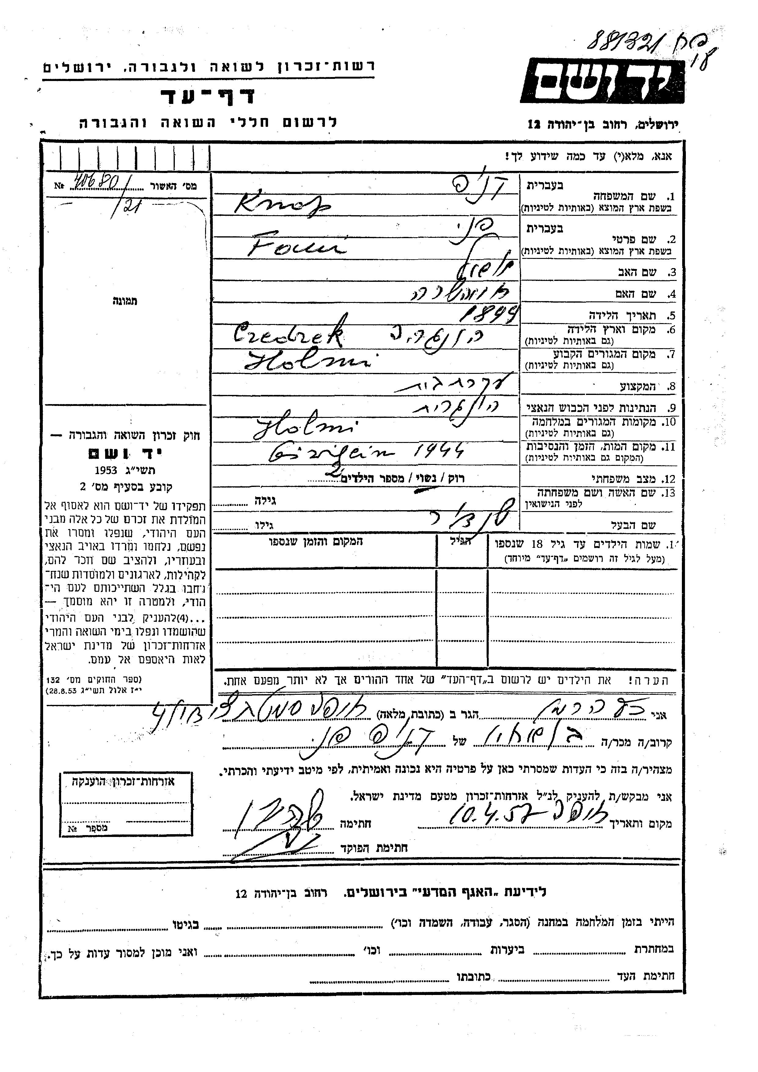 Yad Vashem - Pages of Testimony Names Memorial Collection