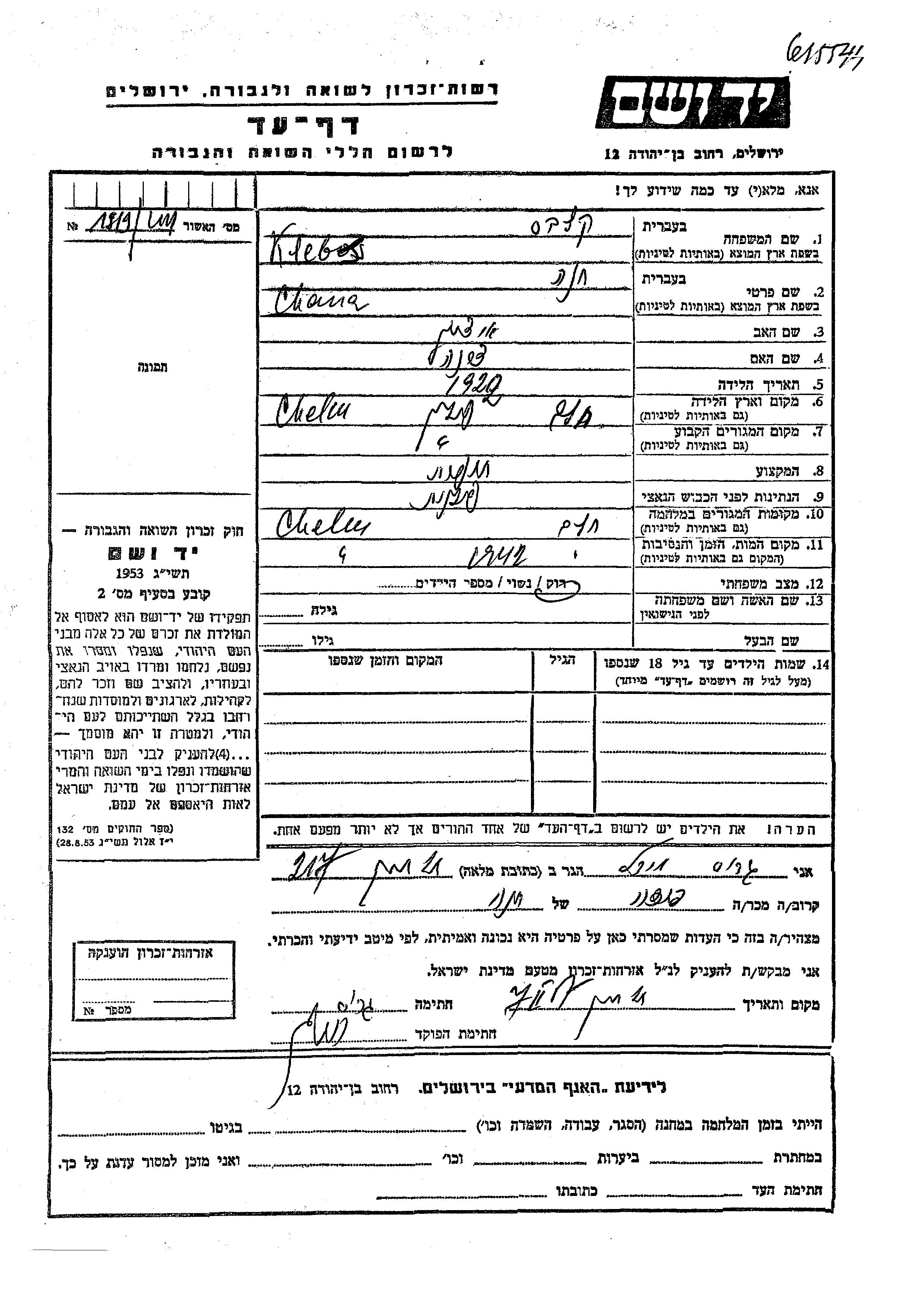 Yad Vashem - Pages of Testimony Names Memorial Collection