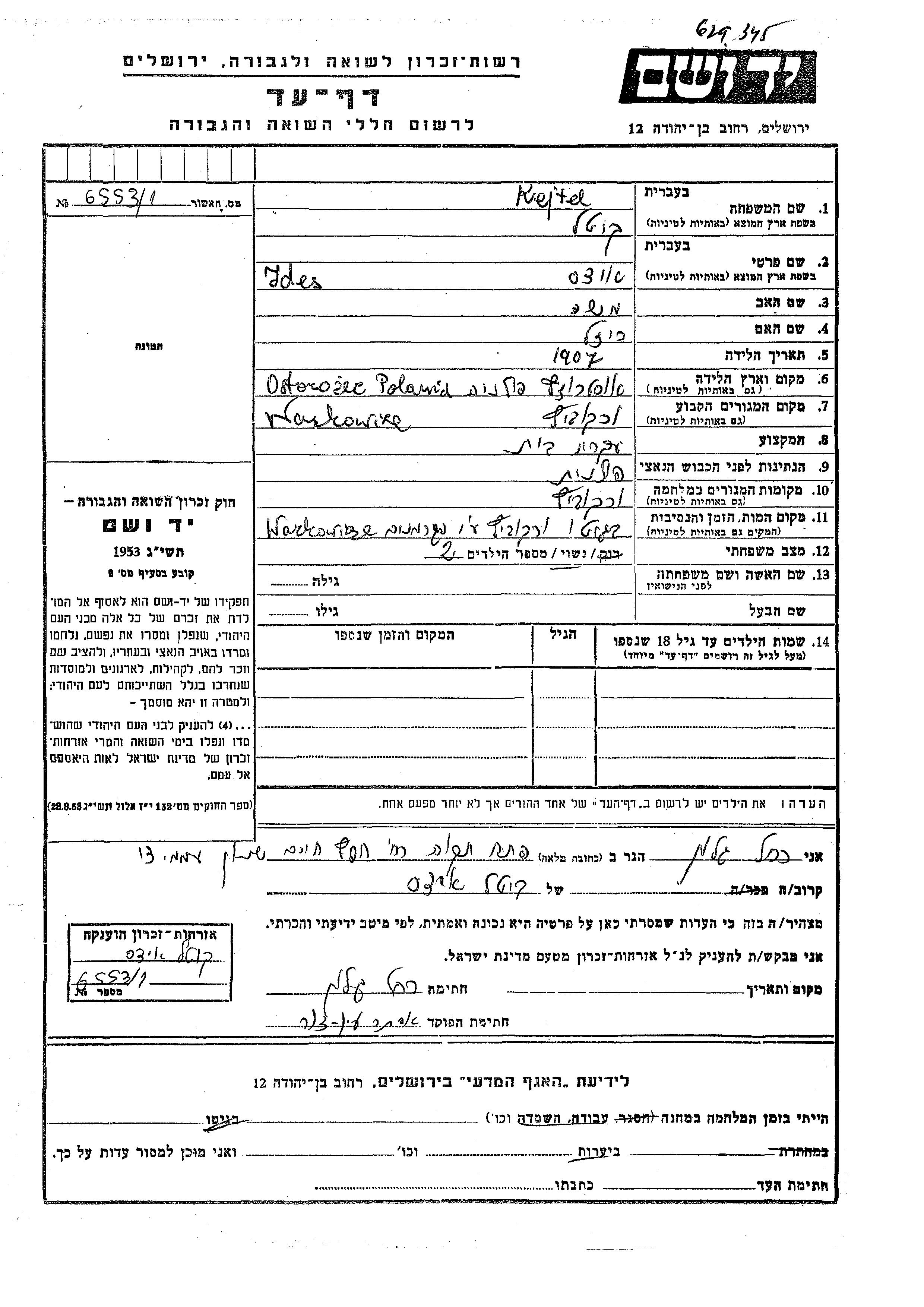 Yad Vashem - Pages of Testimony Names Memorial Collection