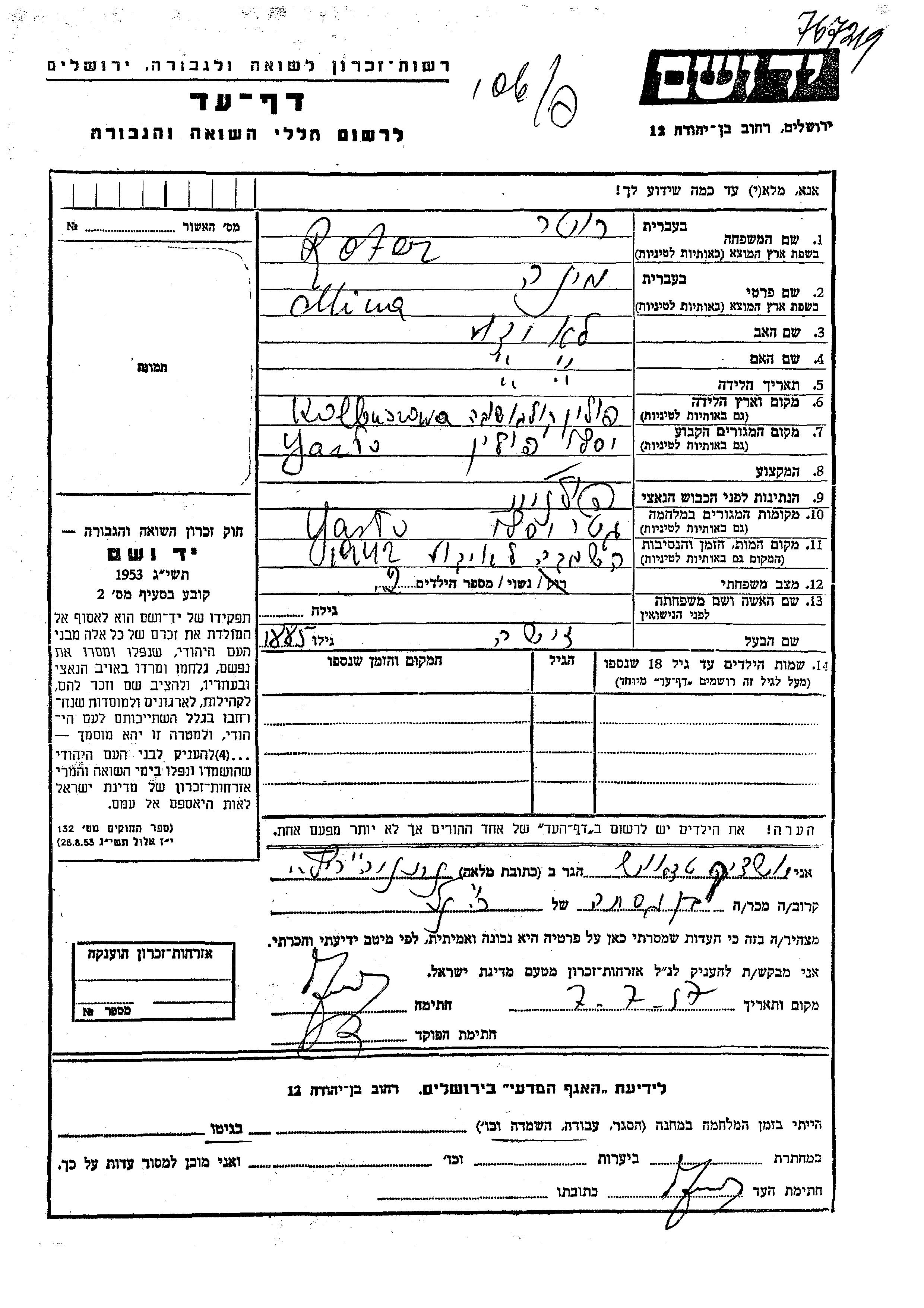 Yad Vashem - Pages of Testimony Names Memorial Collection