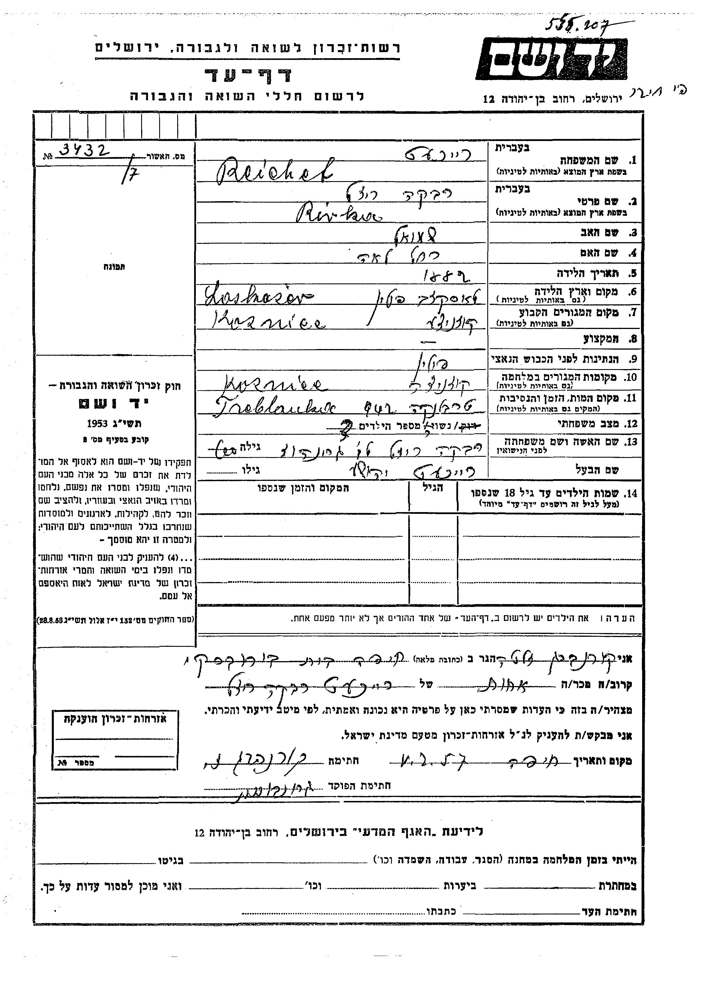 Yad Vashem - Pages of Testimony Names Memorial Collection