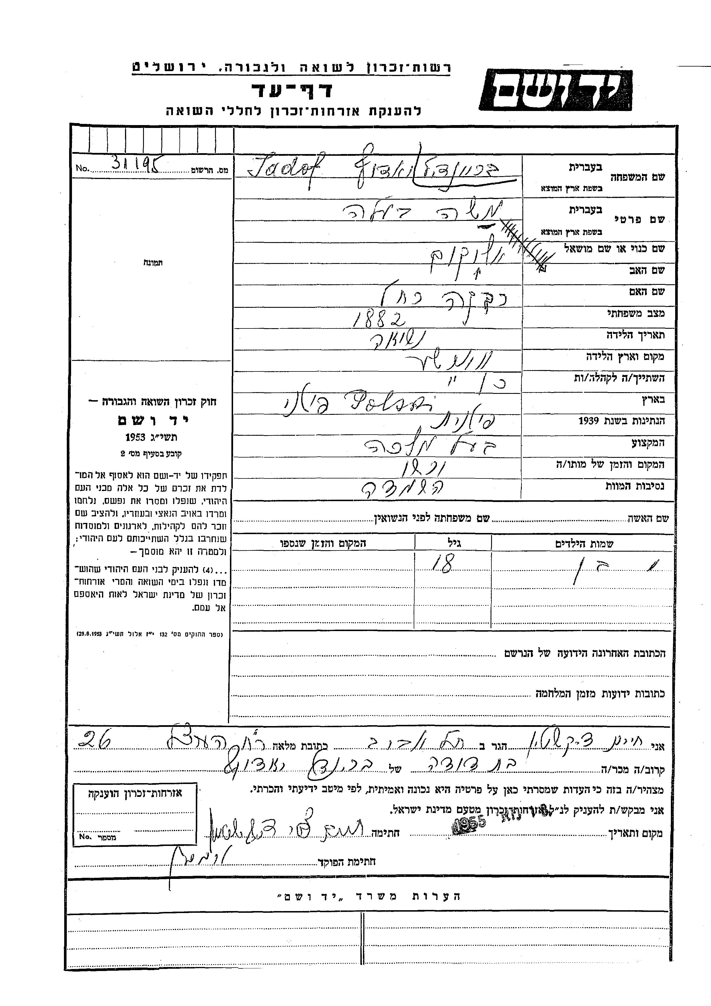 Yad Vashem - Pages of Testimony Names Memorial Collection