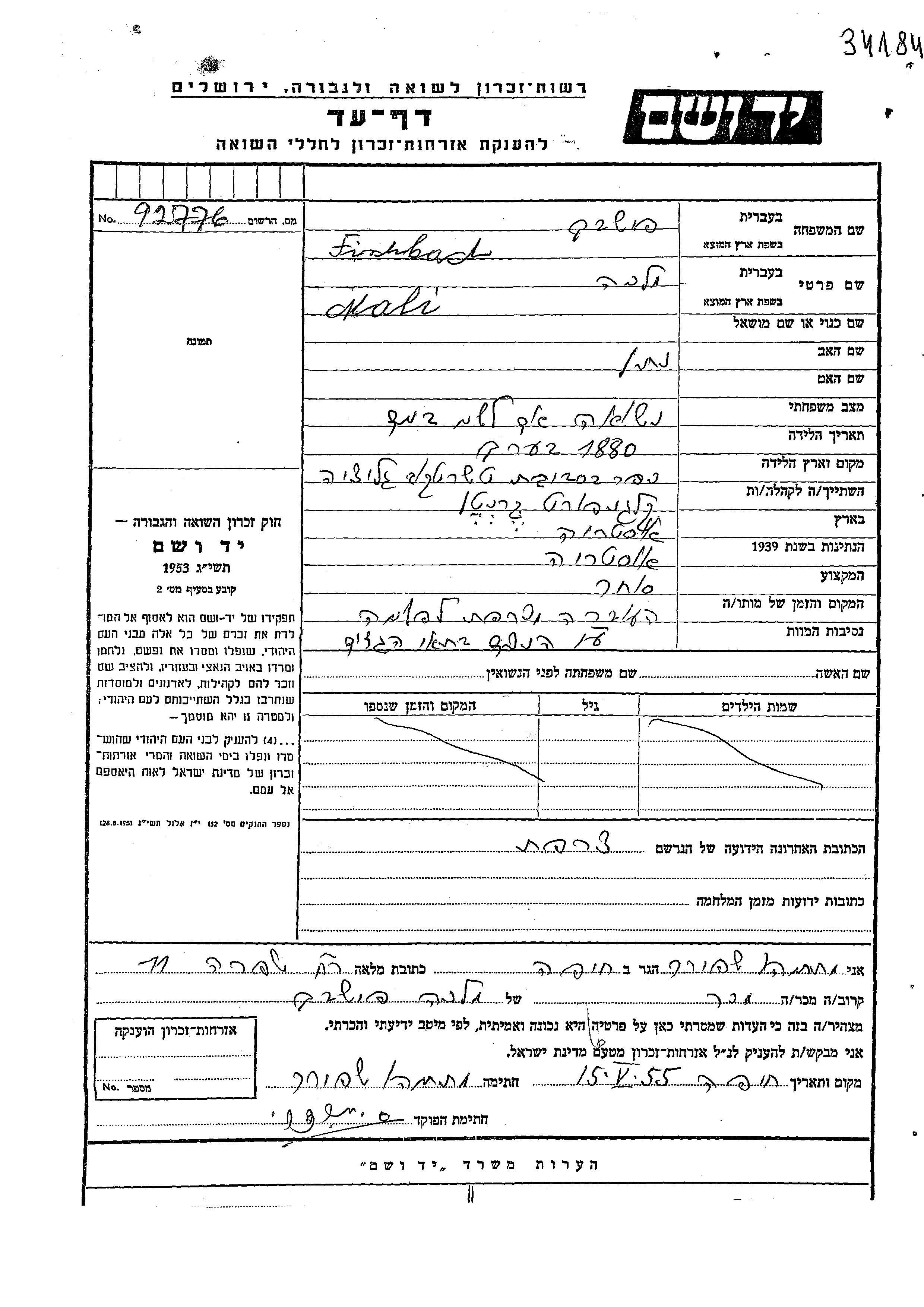 Yad Vashem - Pages of Testimony Names Memorial Collection