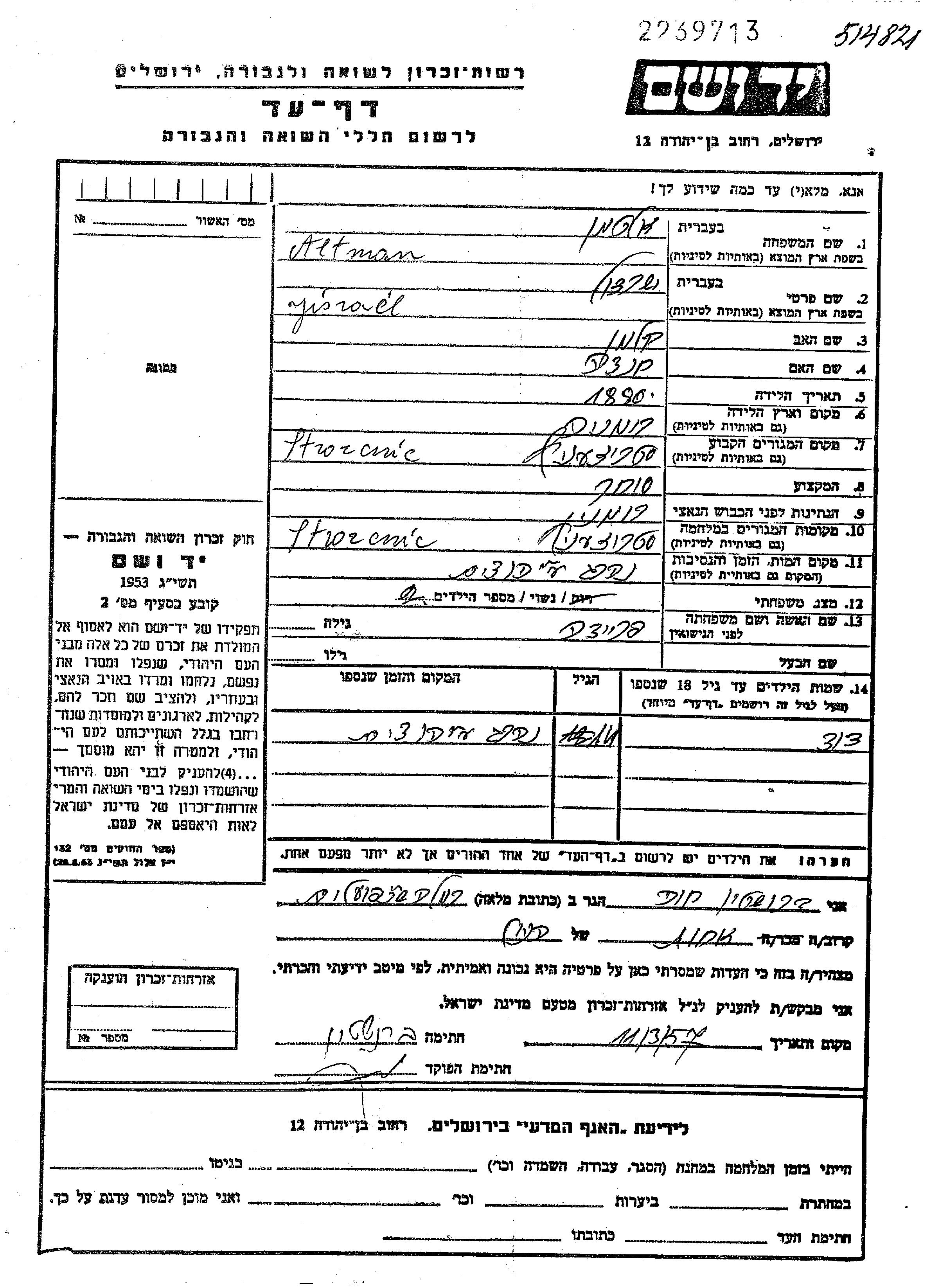 Yad Vashem - Pages of Testimony Names Memorial Collection