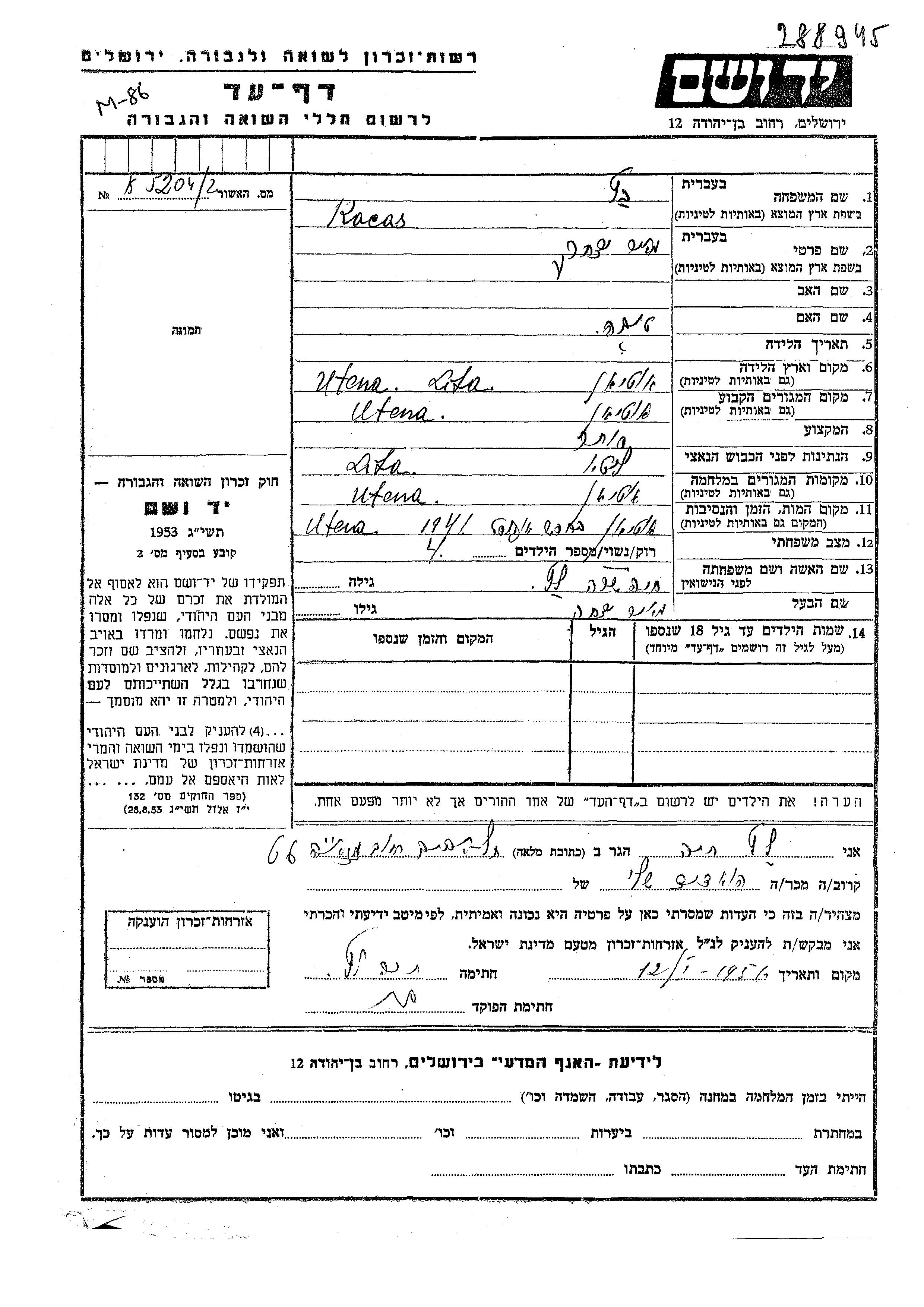 Yad Vashem - Pages of Testimony Names Memorial Collection