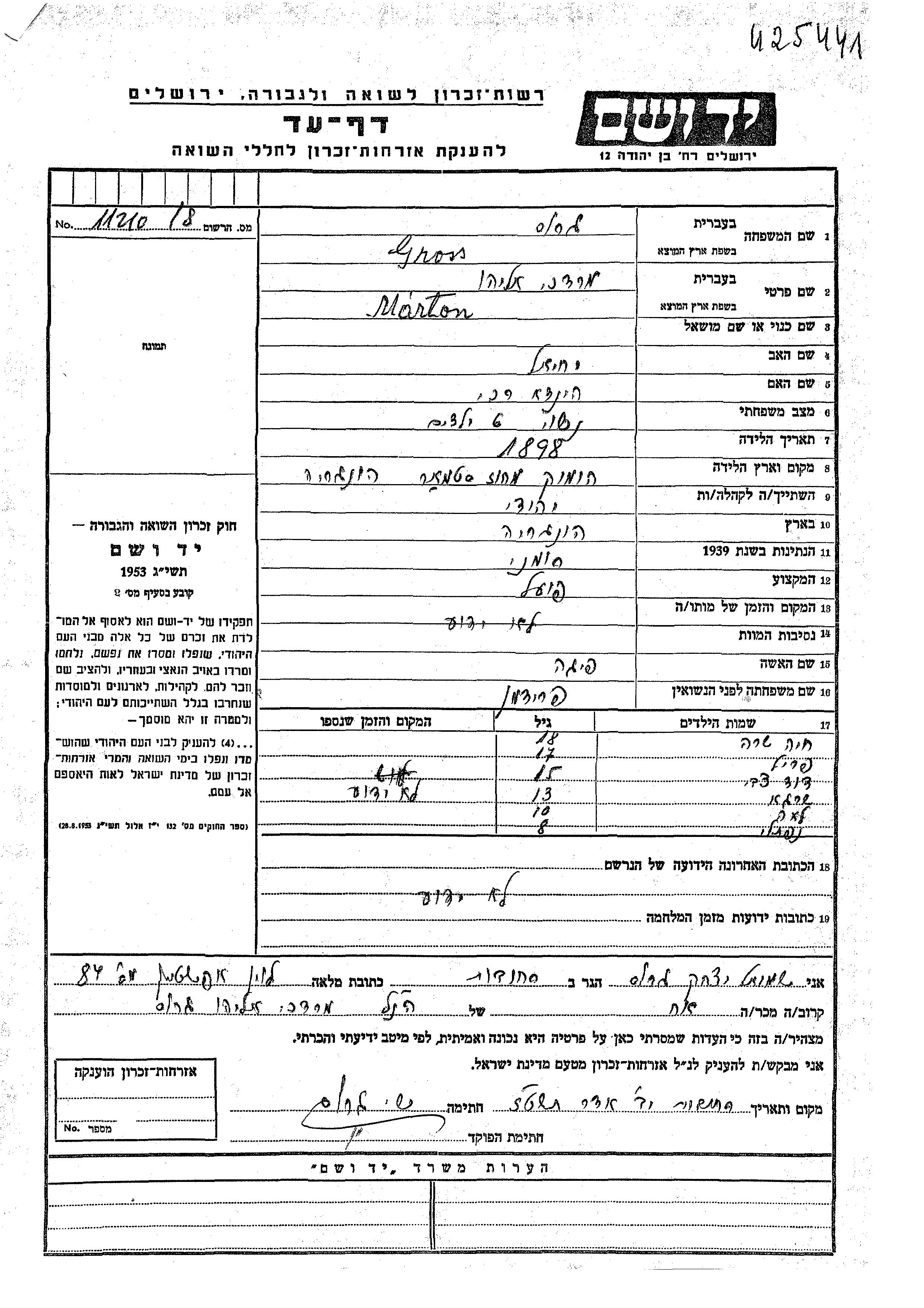 Yad Vashem - Pages of Testimony Names Memorial Collection