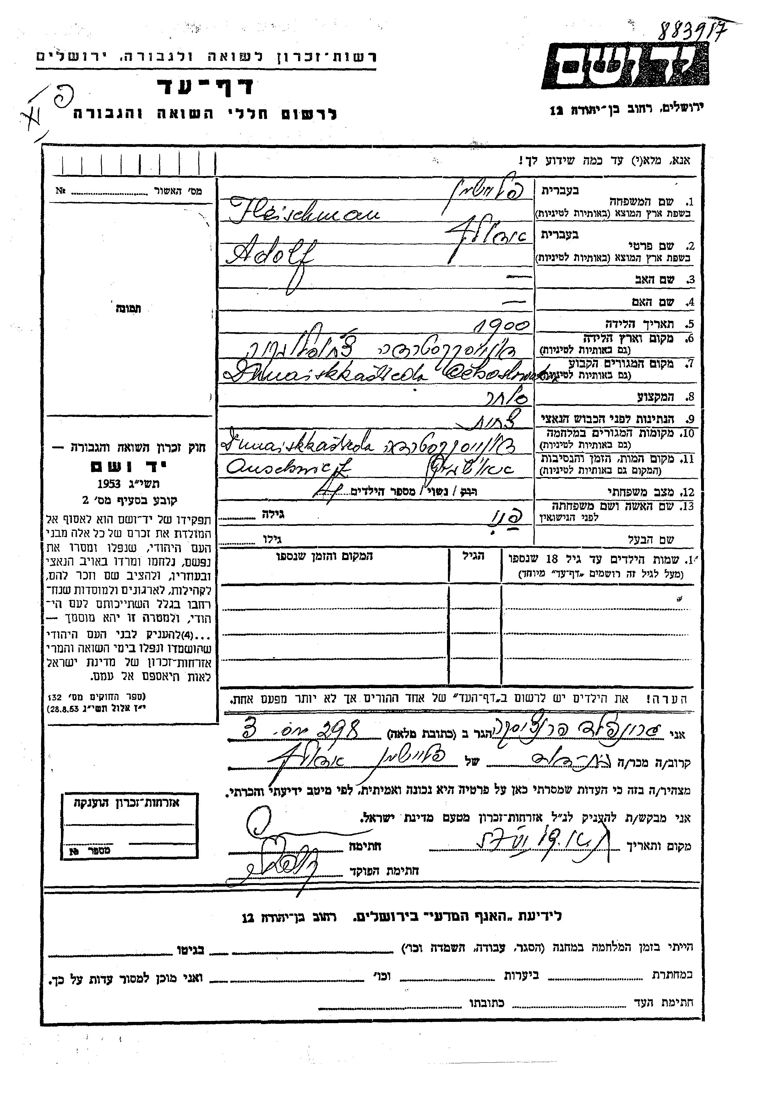 Yad Vashem - Pages of Testimony Names Memorial Collection