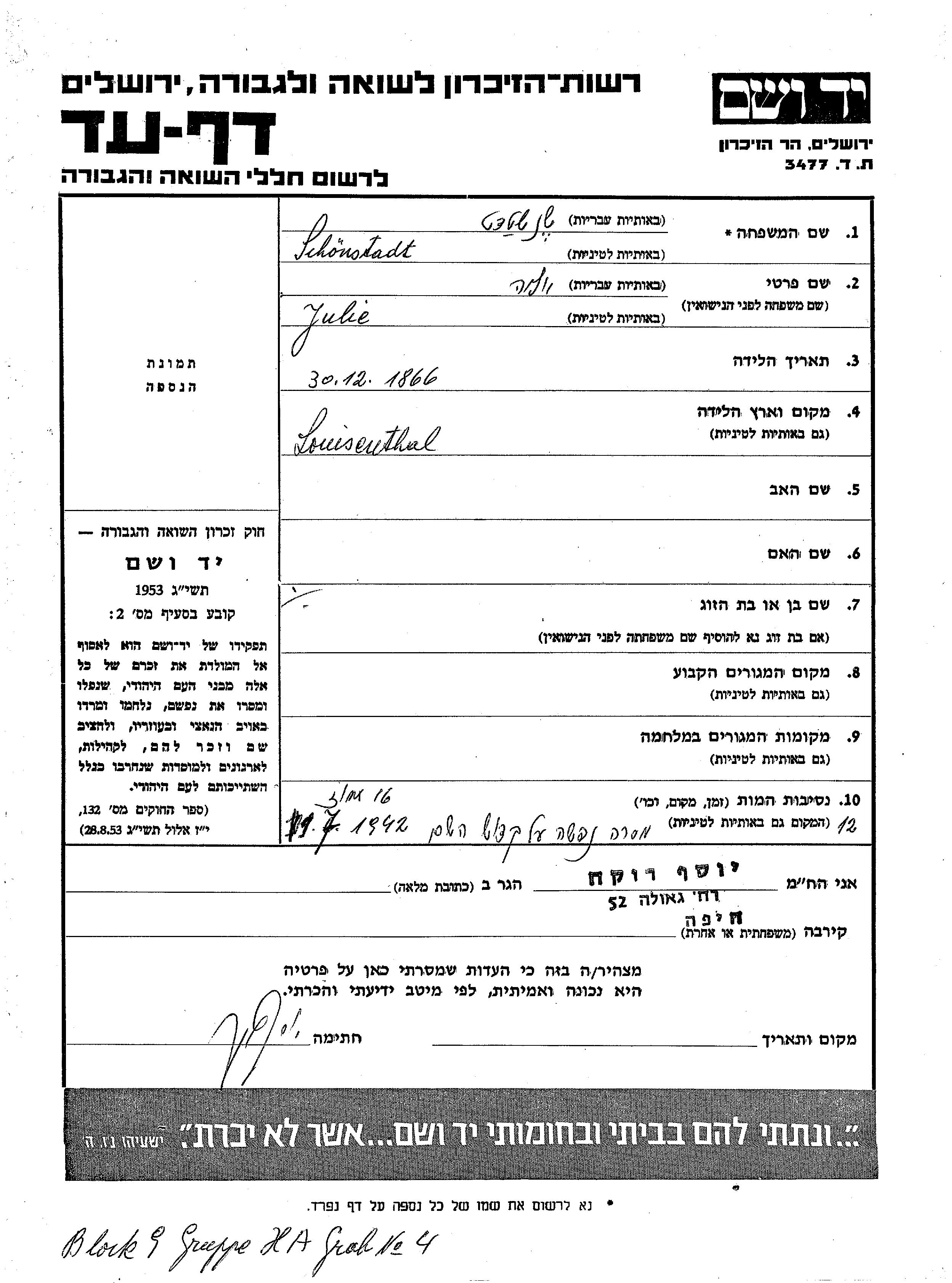 Yad Vashem - Pages of Testimony Names Memorial Collection