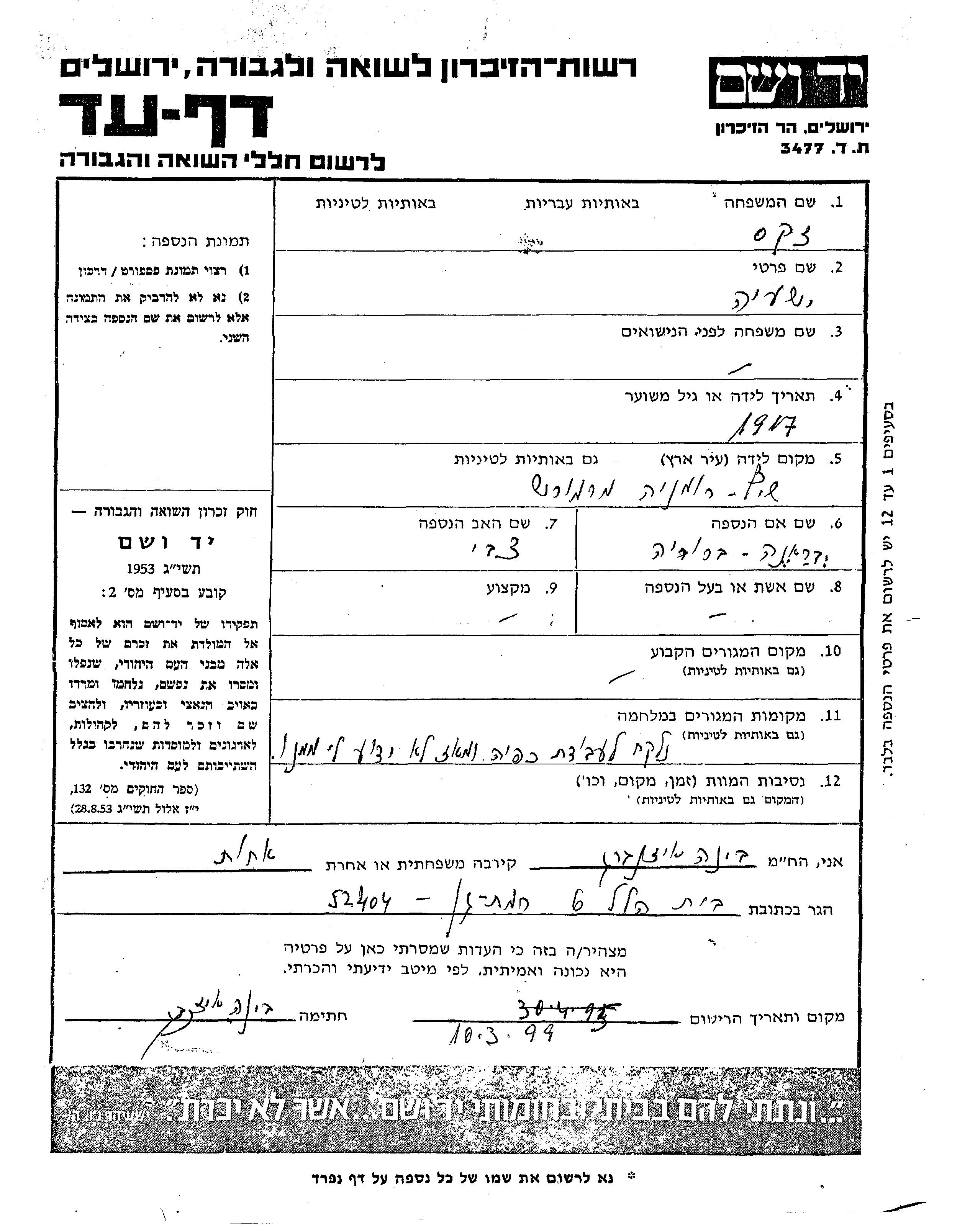 Yad Vashem - Pages of Testimony Names Memorial Collection