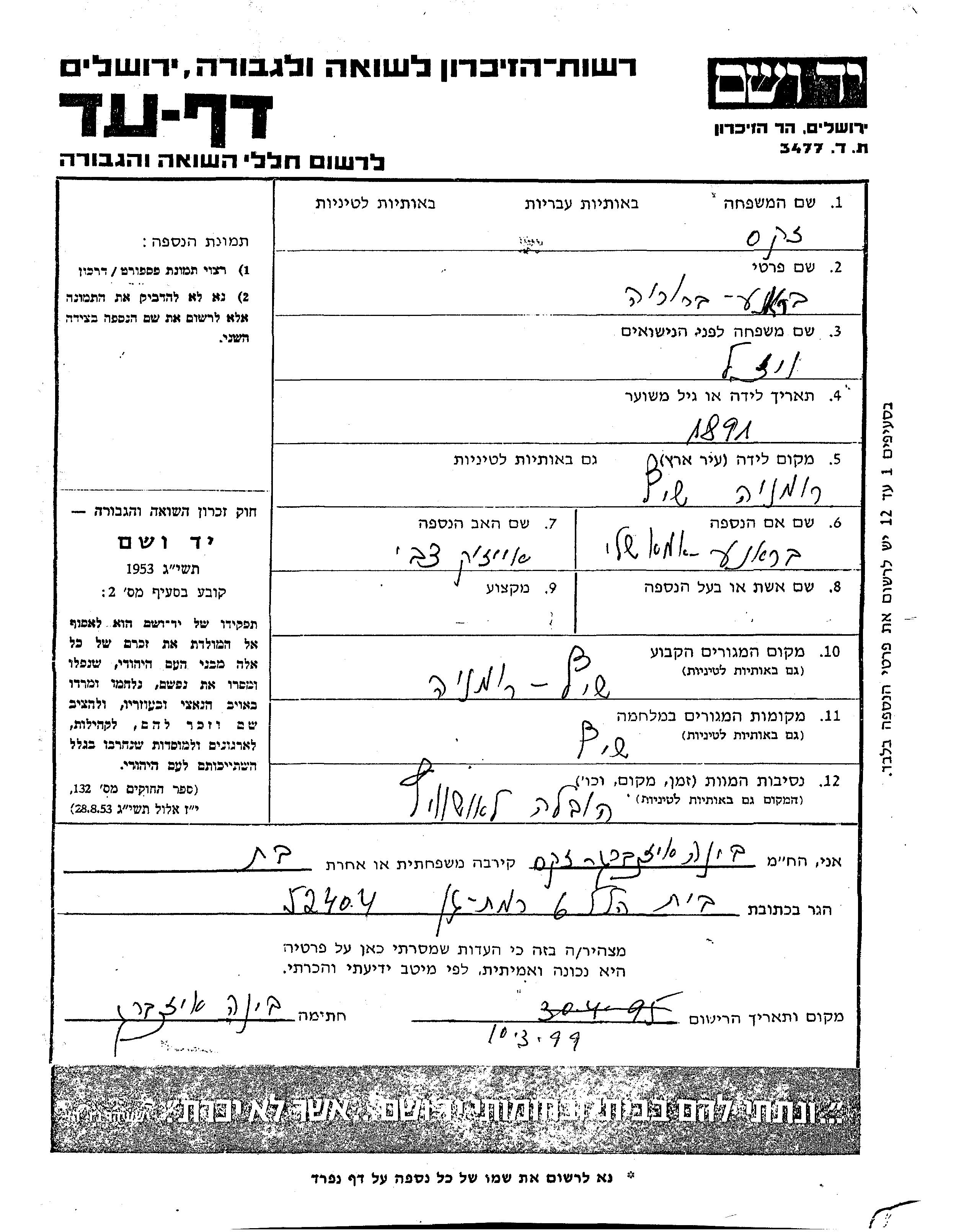 Yad Vashem - Pages of Testimony Names Memorial Collection