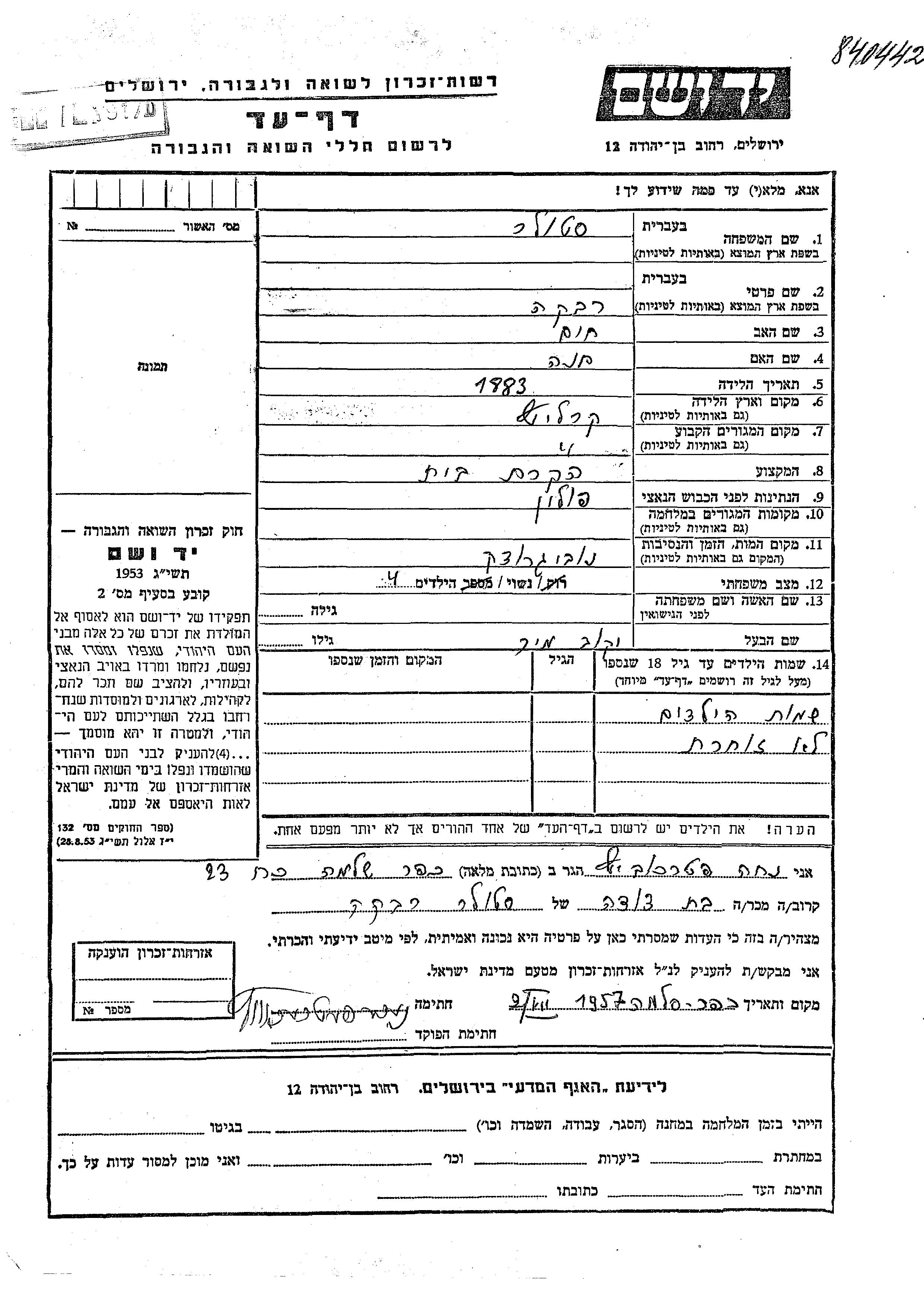 Yad Vashem - Pages of Testimony Names Memorial Collection