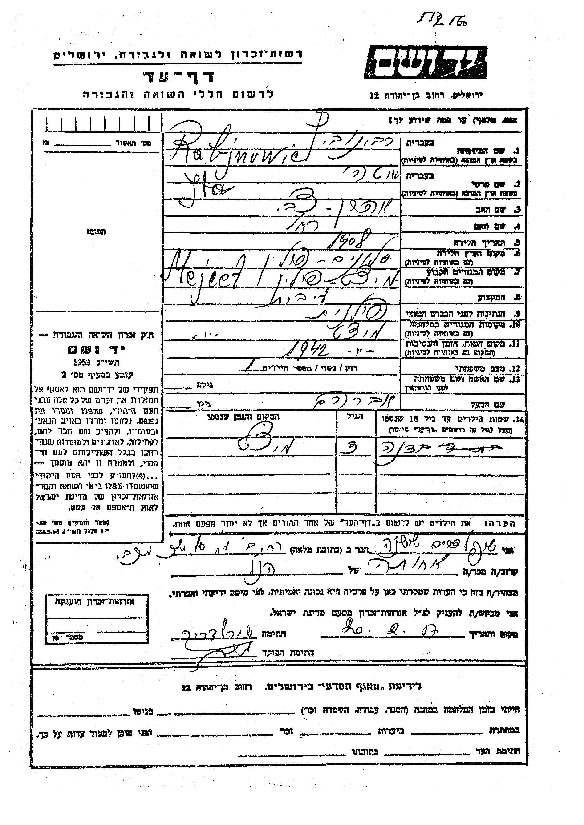 Rabinovitz Ita 1908 Molczadz, Pologne Feuille de témoignage