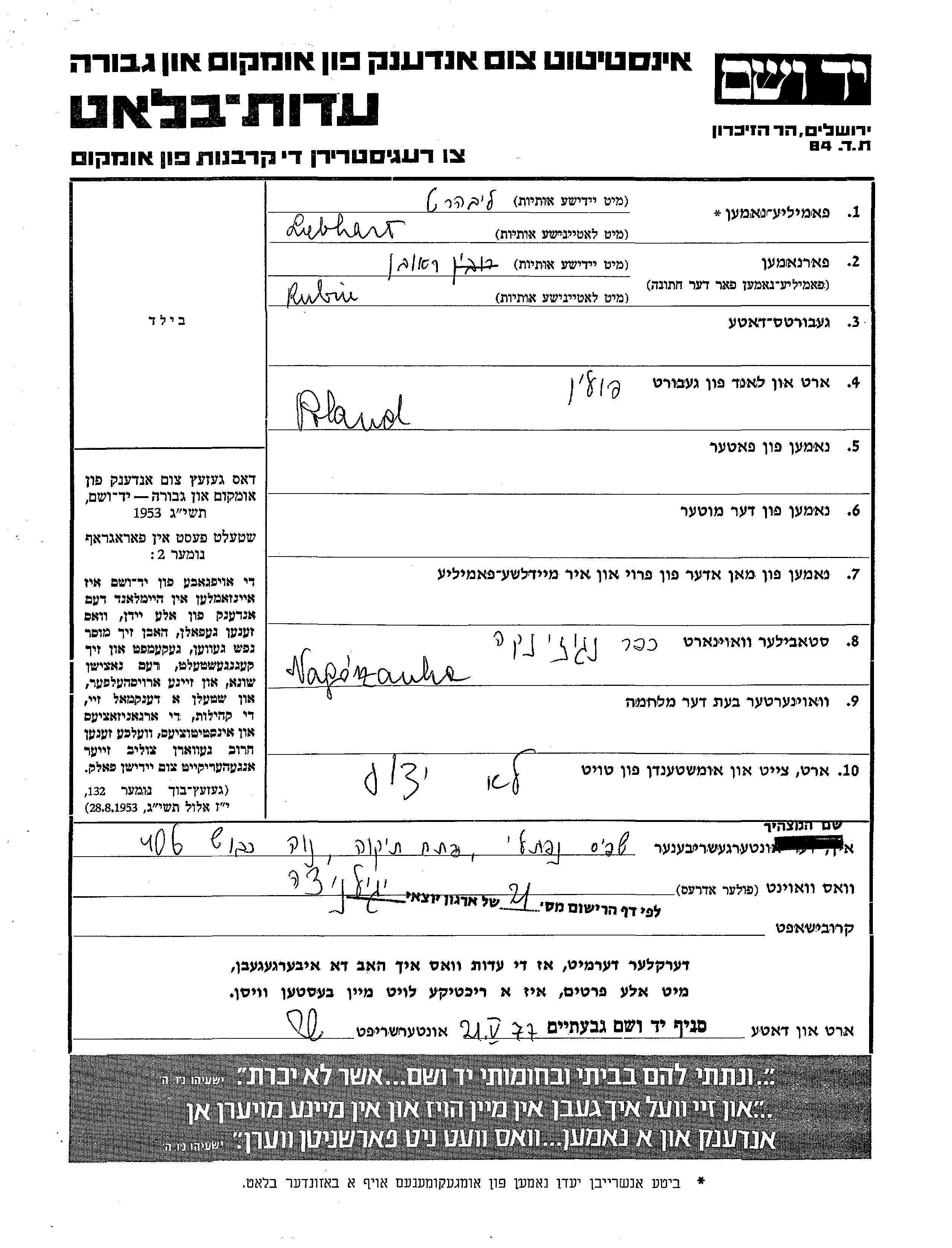 Yad Vashem - Pages of Testimony Names Memorial Collection