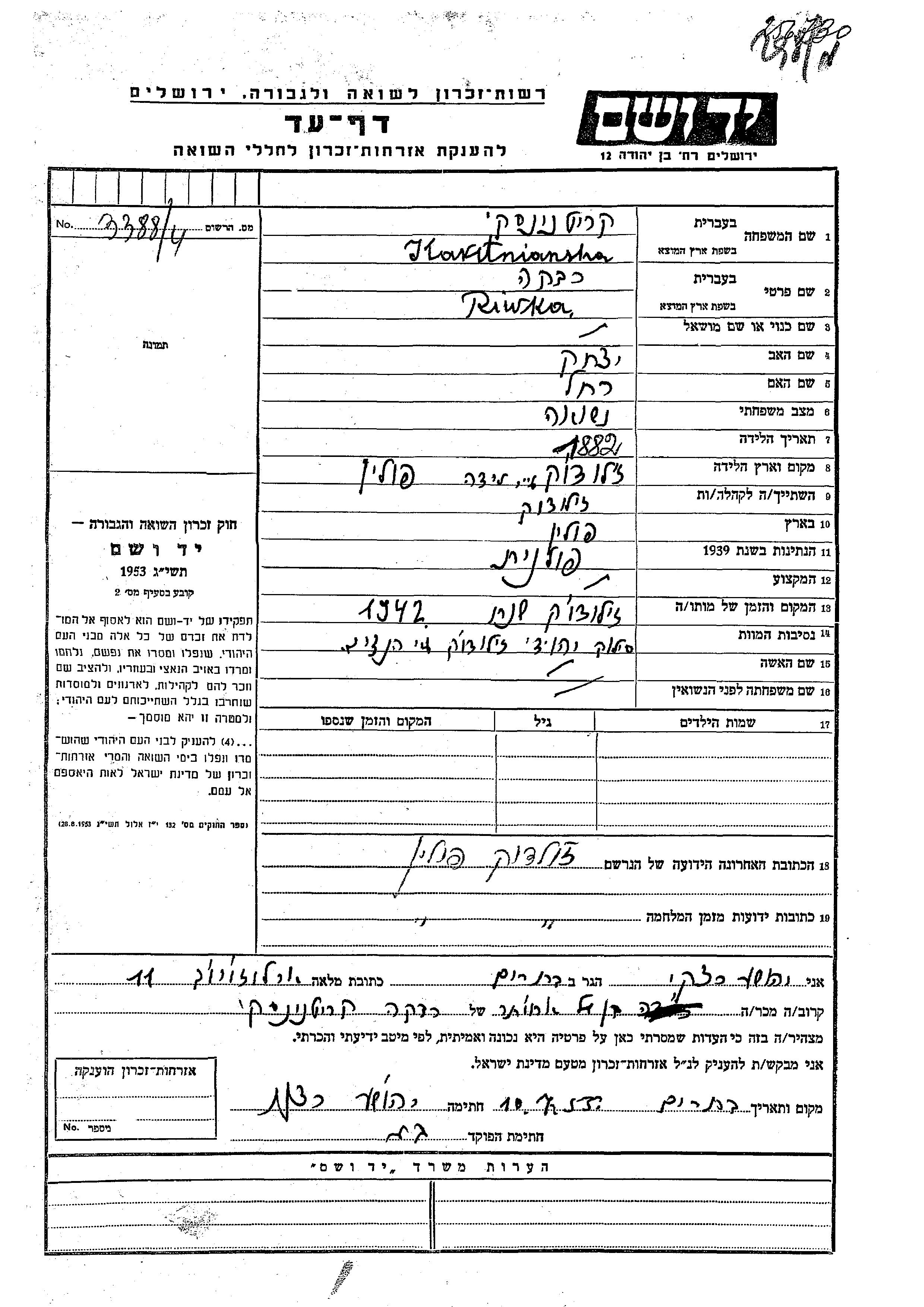 Yad Vashem - Pages of Testimony Names Memorial Collection