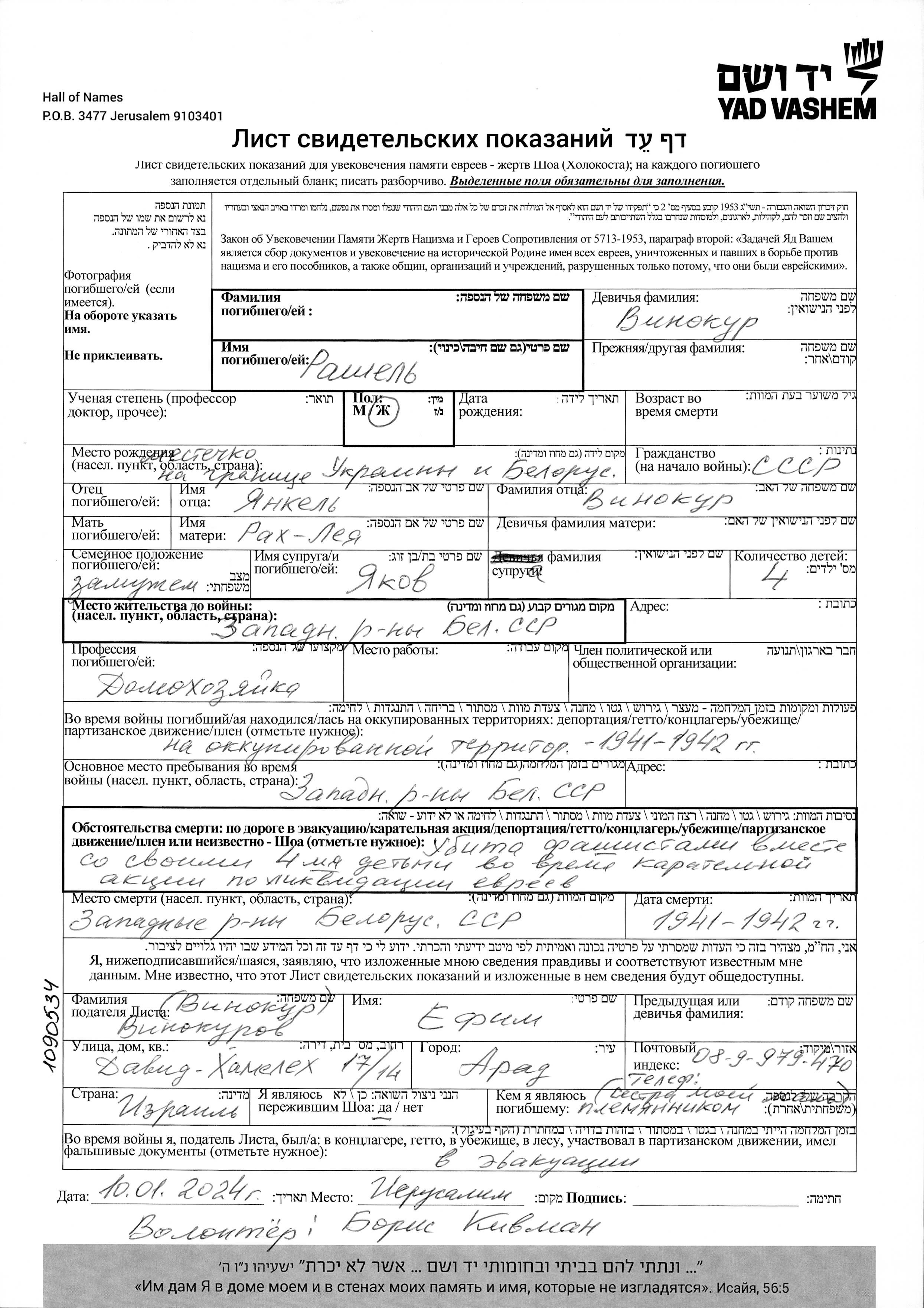 Yad Vashem - Pages of Testimony Names Memorial Collection
