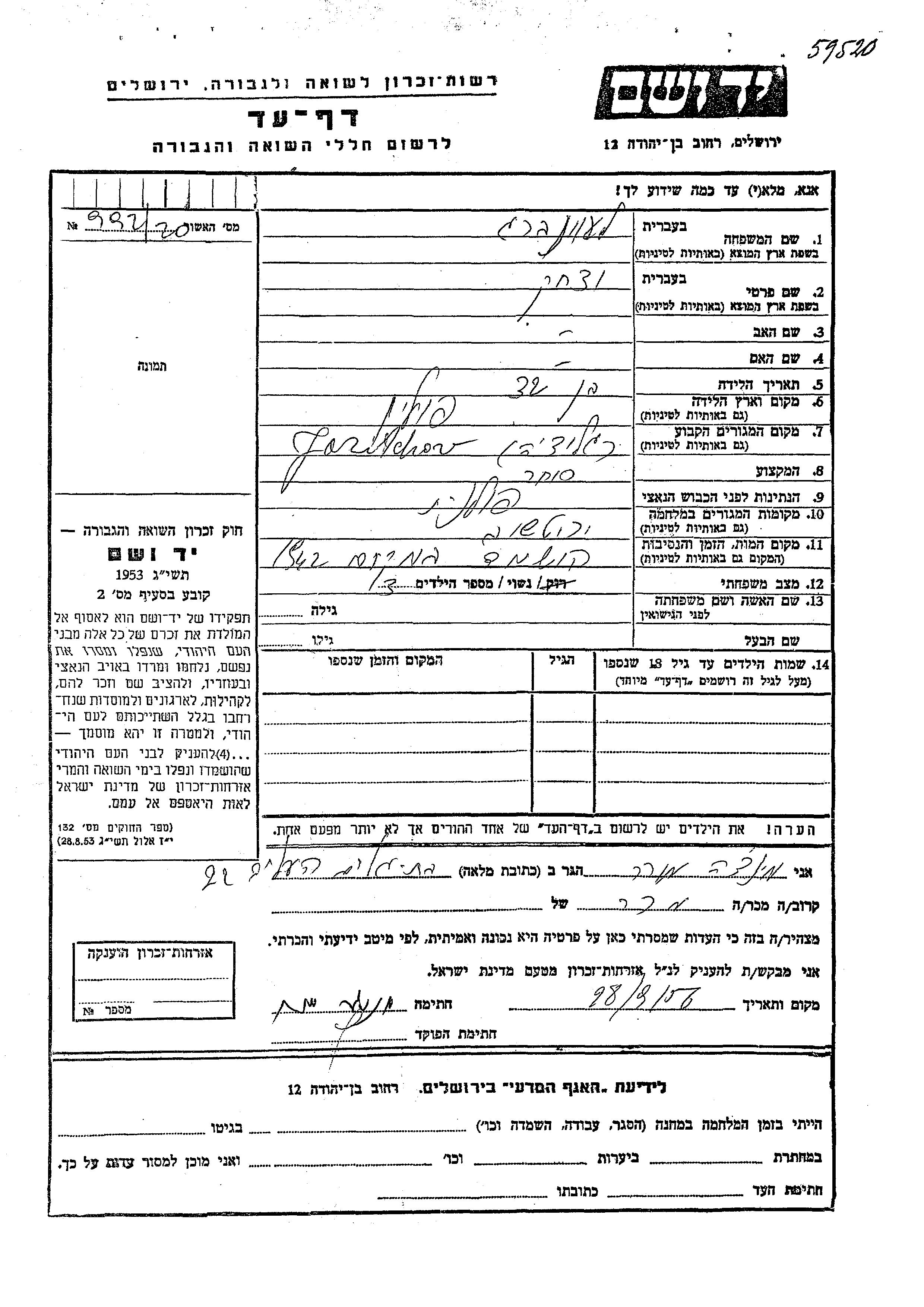 Yad Vashem - Pages of Testimony Names Memorial Collection