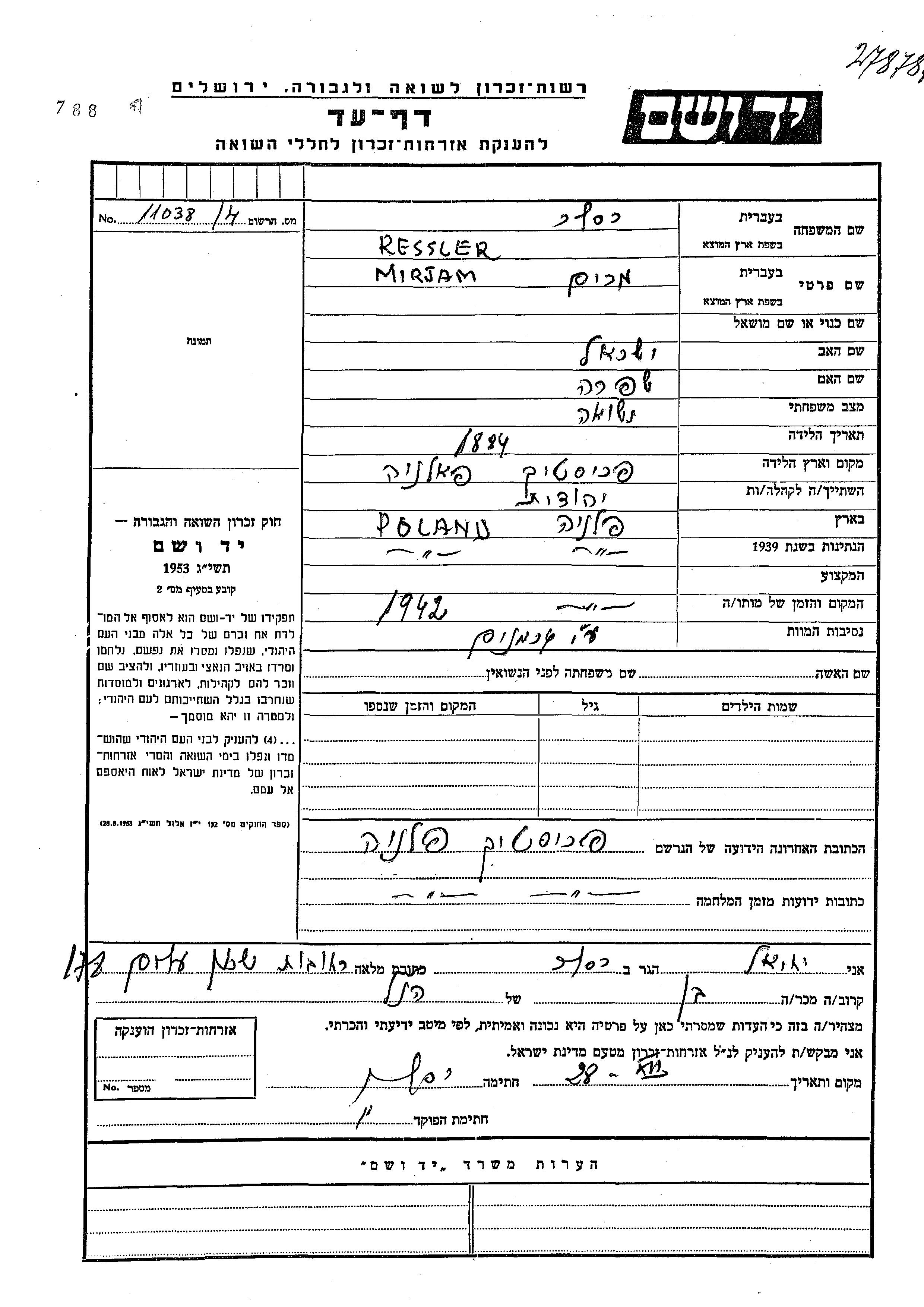 Yad Vashem - Pages of Testimony Names Memorial Collection