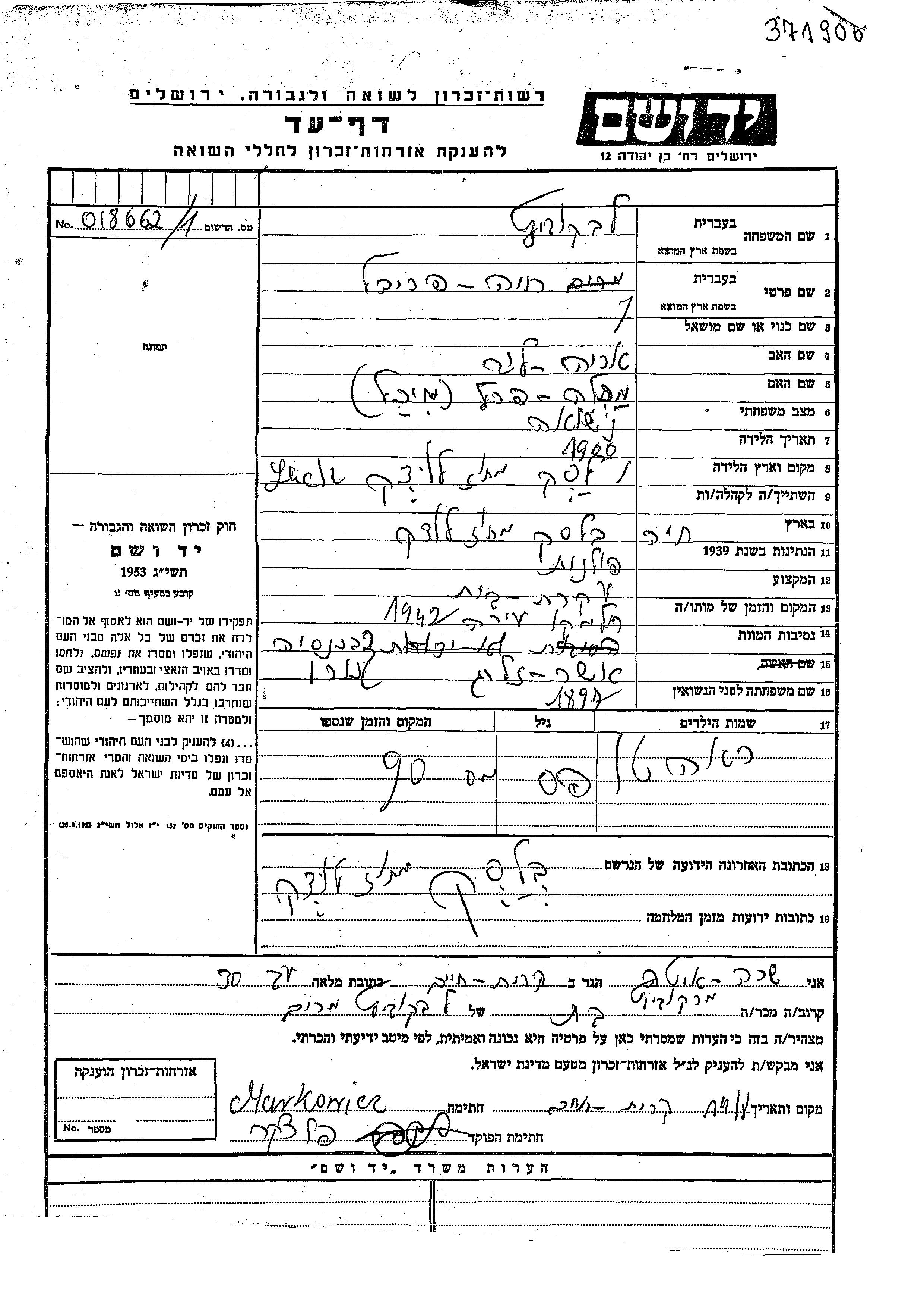 Yad Vashem - Pages of Testimony Names Memorial Collection