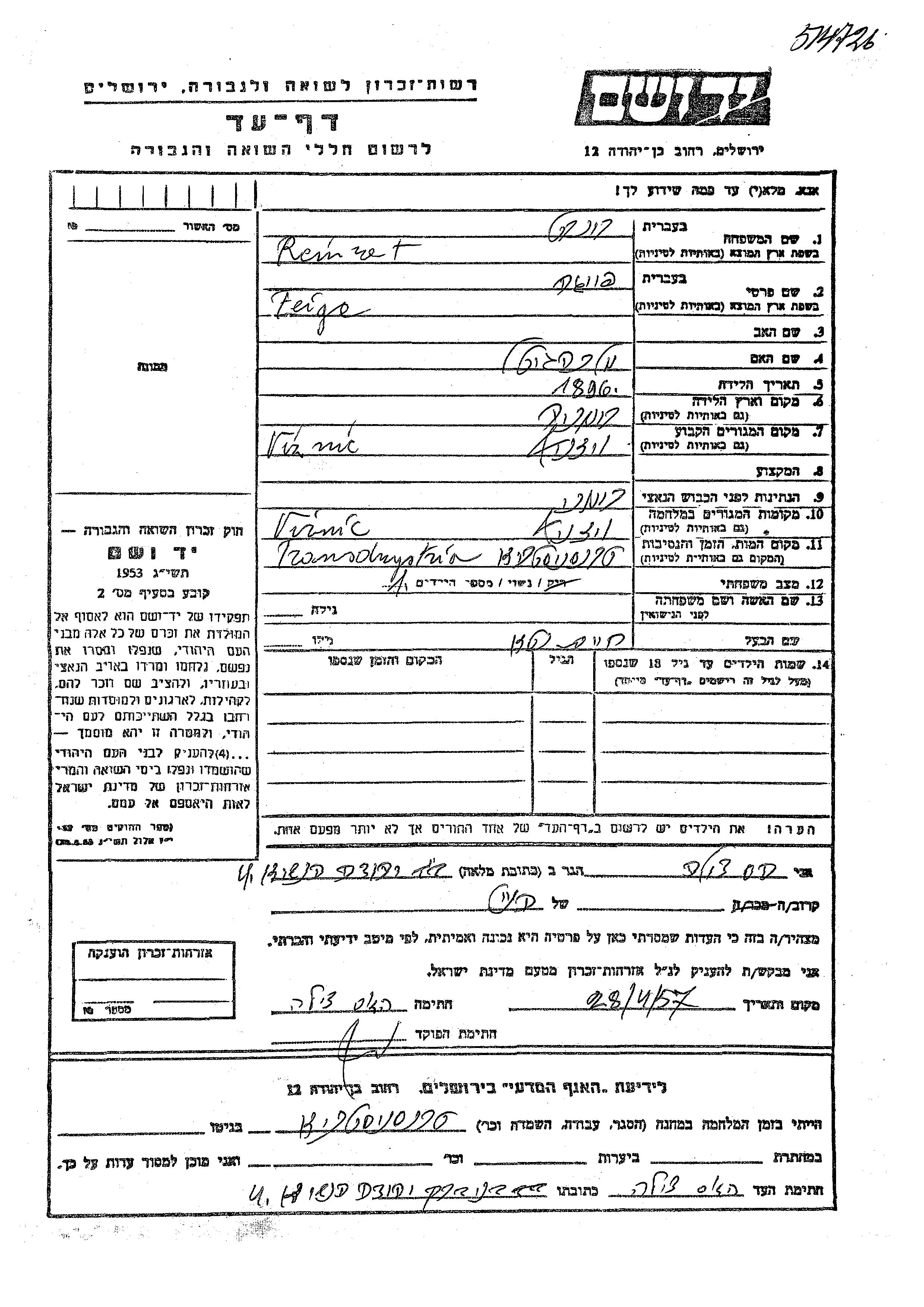 Yad Vashem - Pages of Testimony Names Memorial Collection