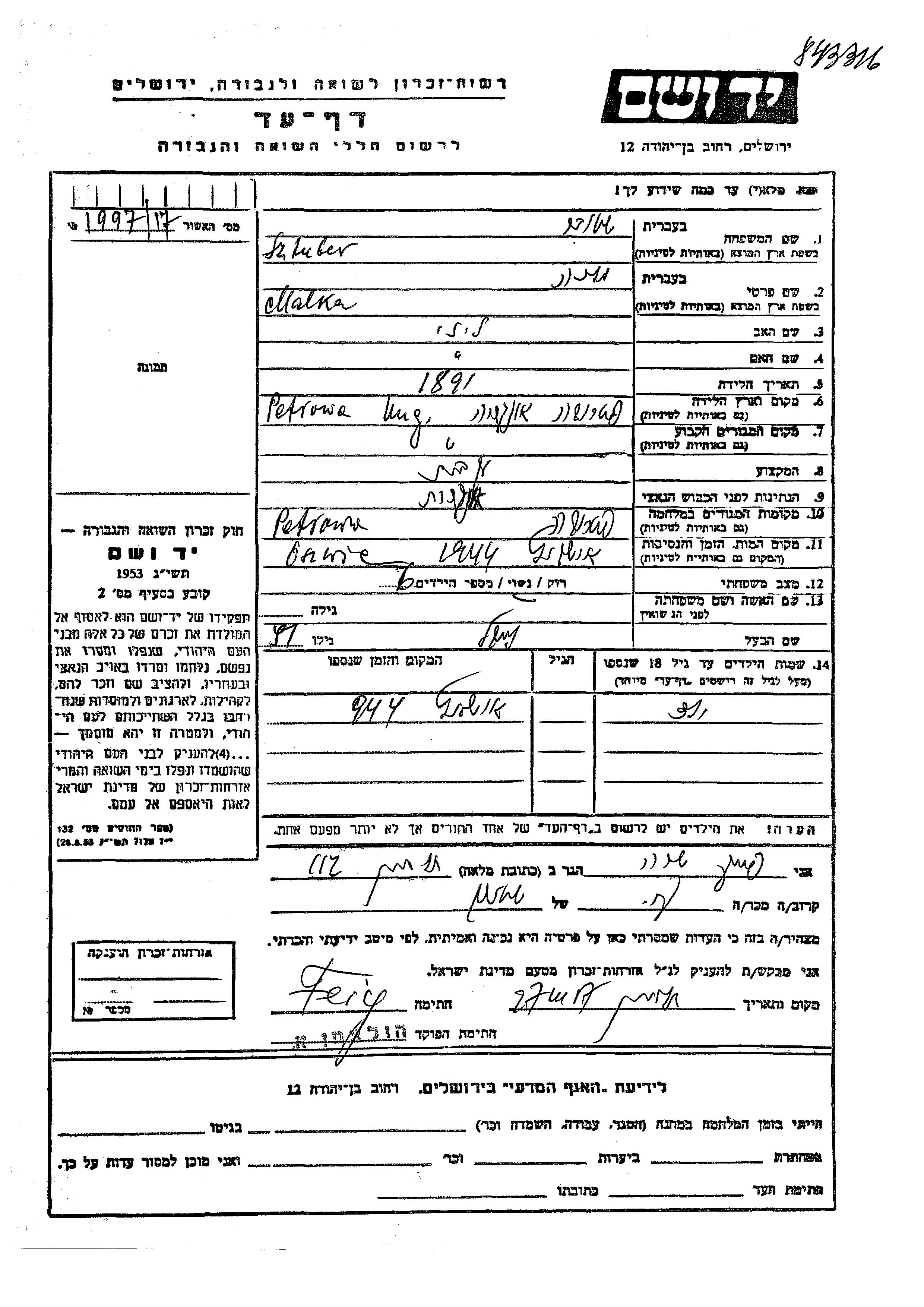 Yad Vashem - Pages of Testimony Names Memorial Collection