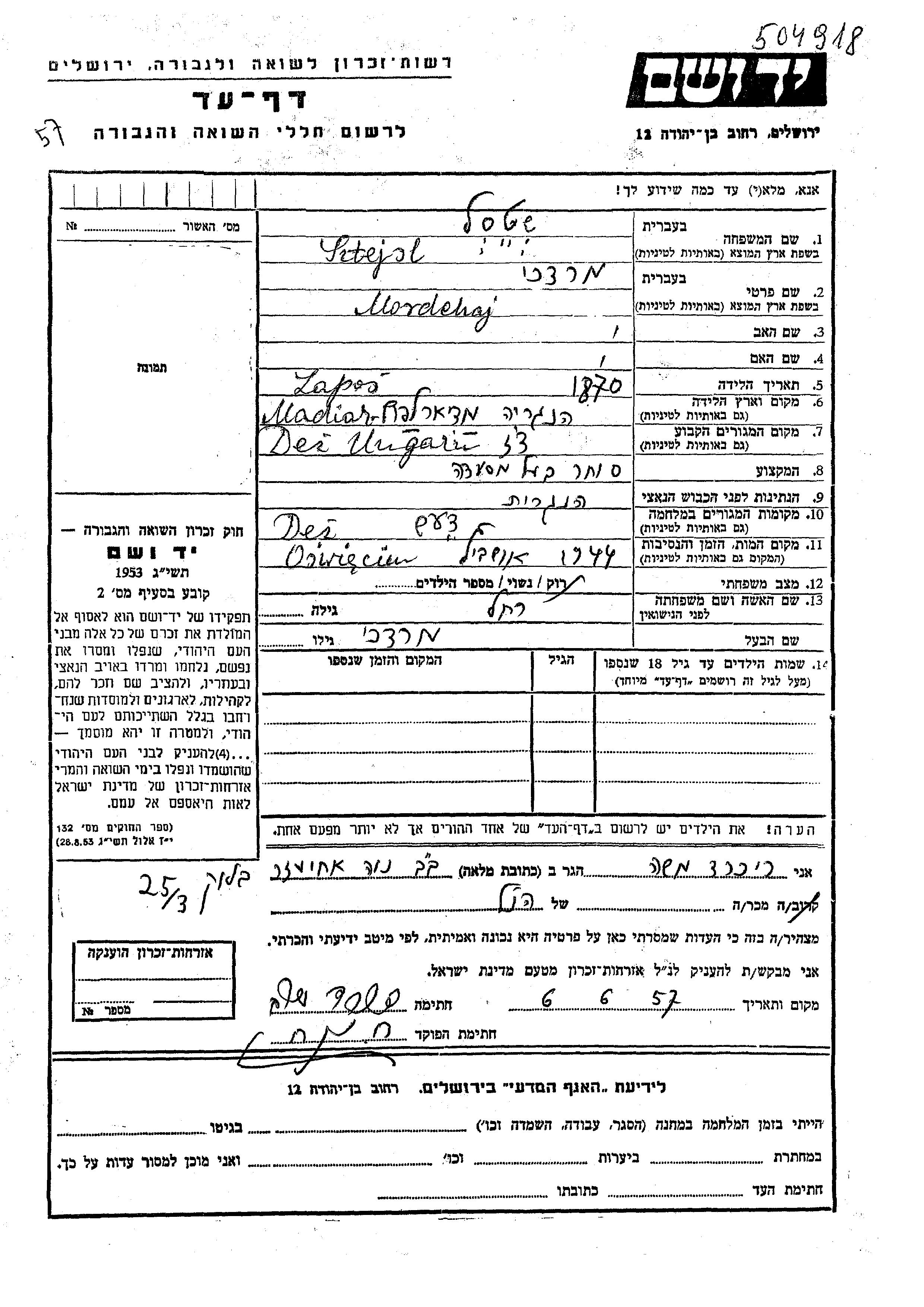 Yad Vashem - Pages of Testimony Names Memorial Collection
