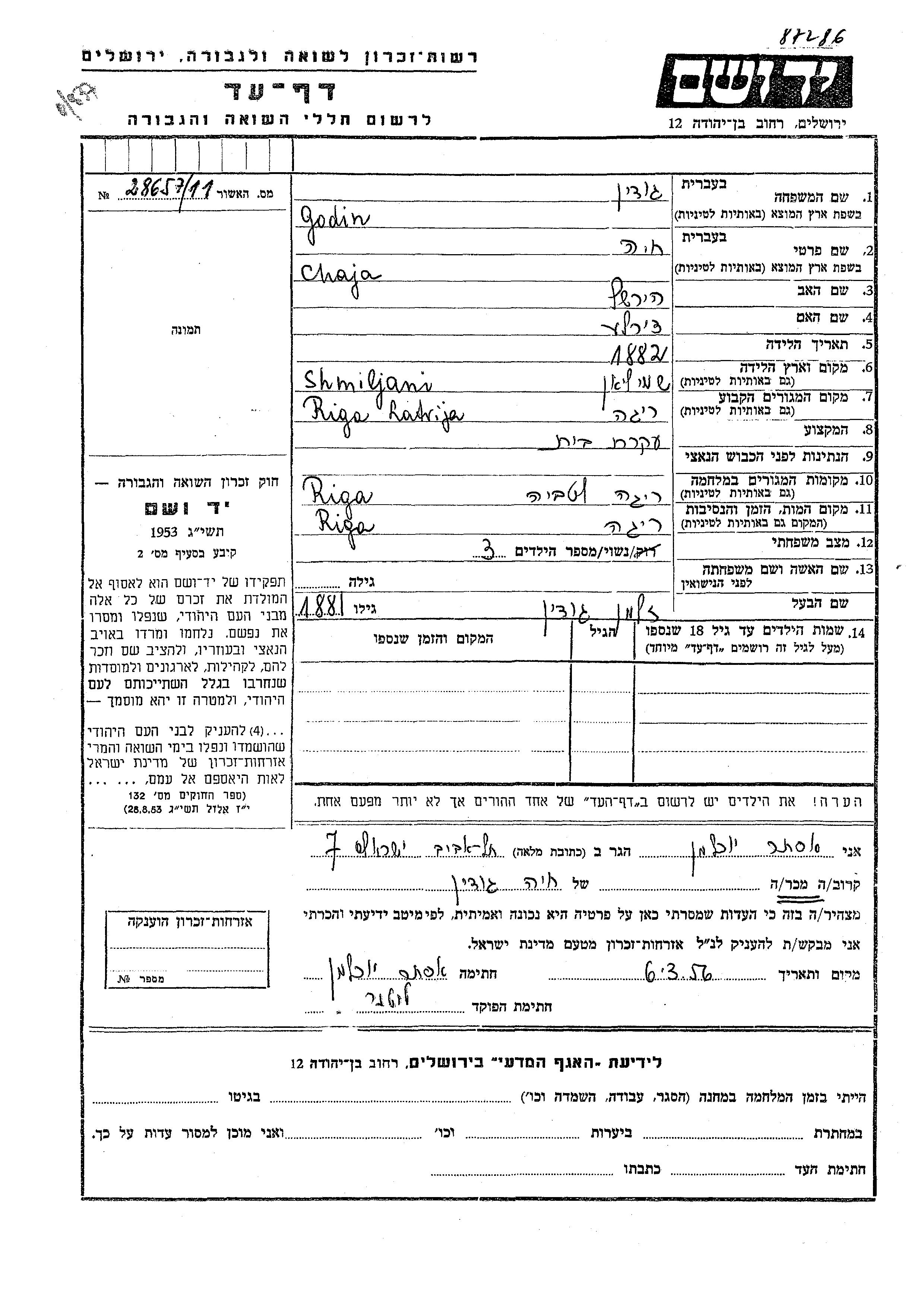 Yad Vashem - Pages of Testimony Names Memorial Collection