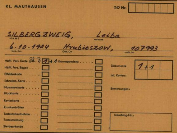 Silbergzweig Leiba 1924 Hrubieszow, Pologne Fichier des prisonniers du camp de Mauthausen