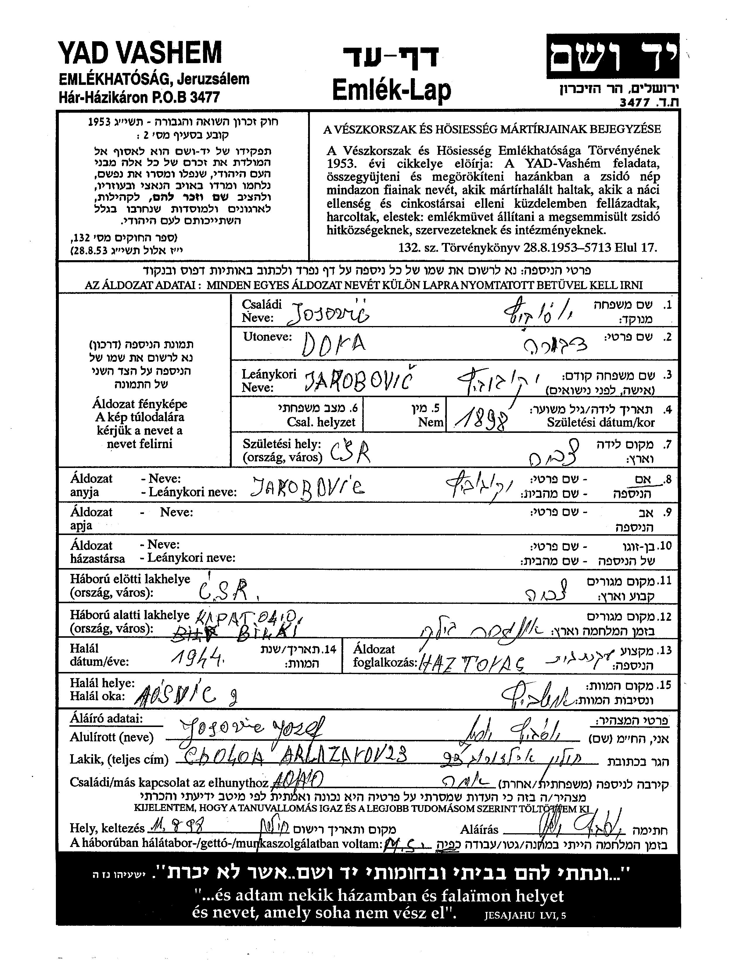 Yad Vashem - Pages of Testimony Names Memorial Collection