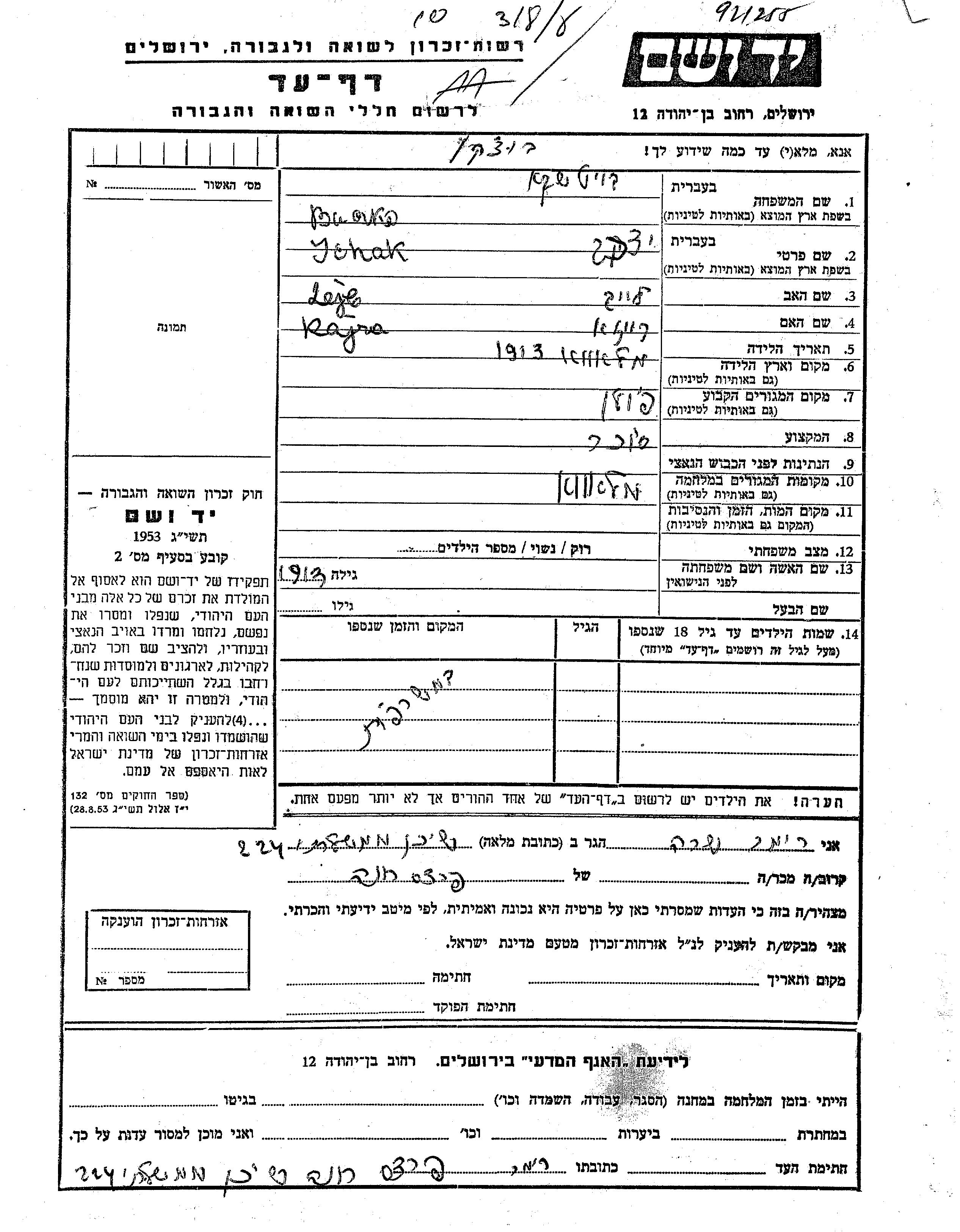Yad Vashem - Pages of Testimony Names Memorial Collection