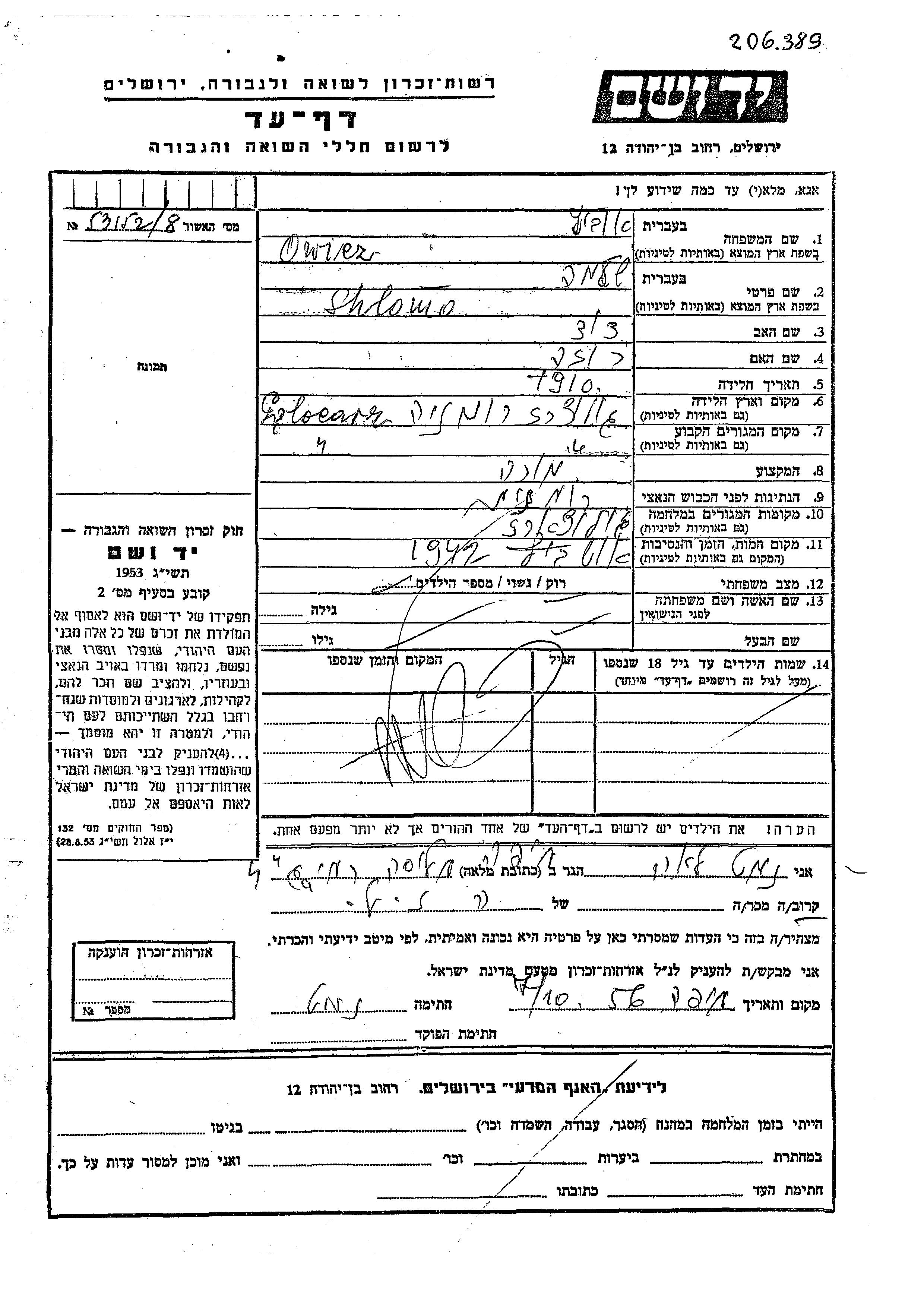 Yad Vashem - Pages of Testimony Names Memorial Collection