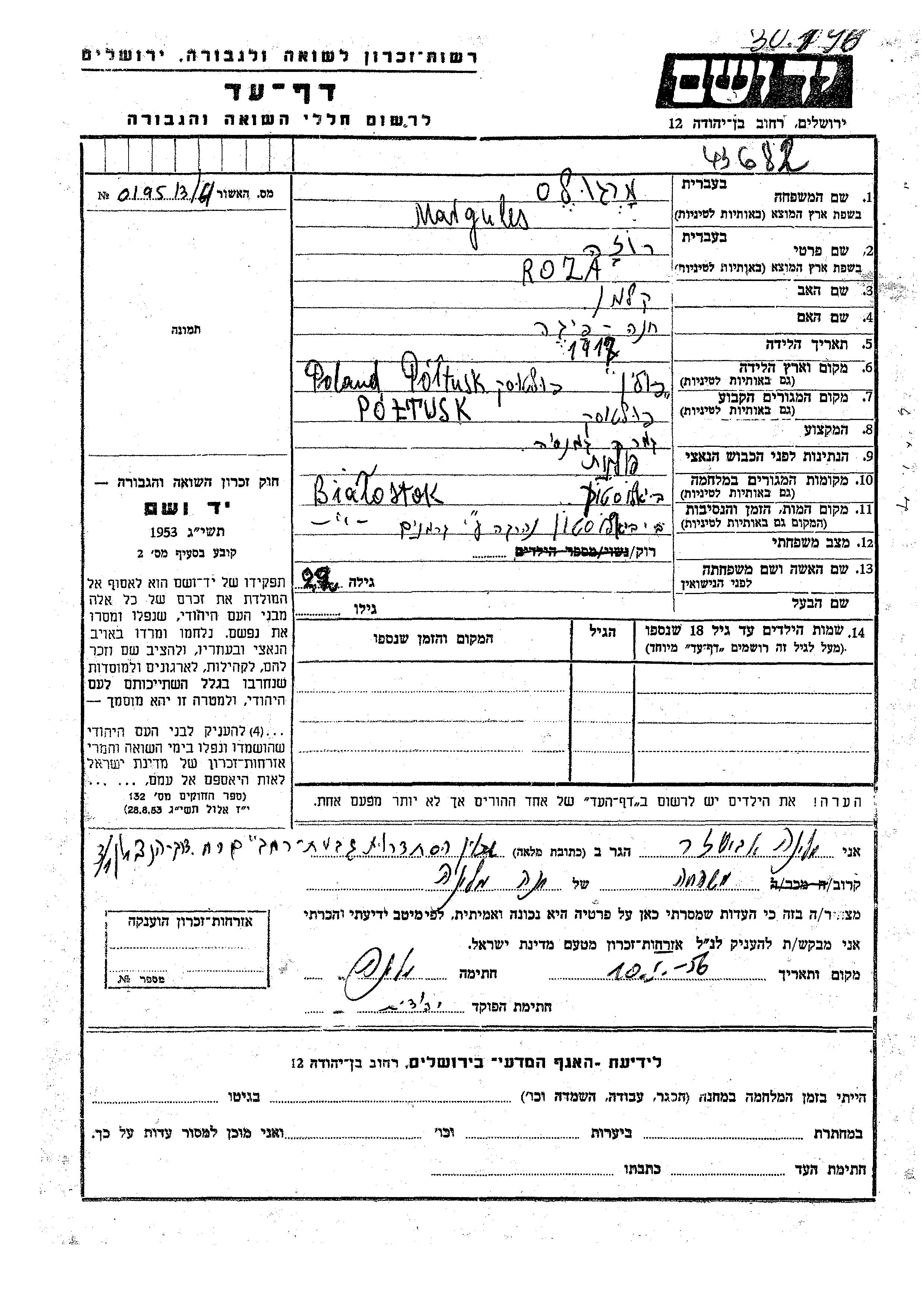 Yad Vashem - Pages of Testimony Names Memorial Collection