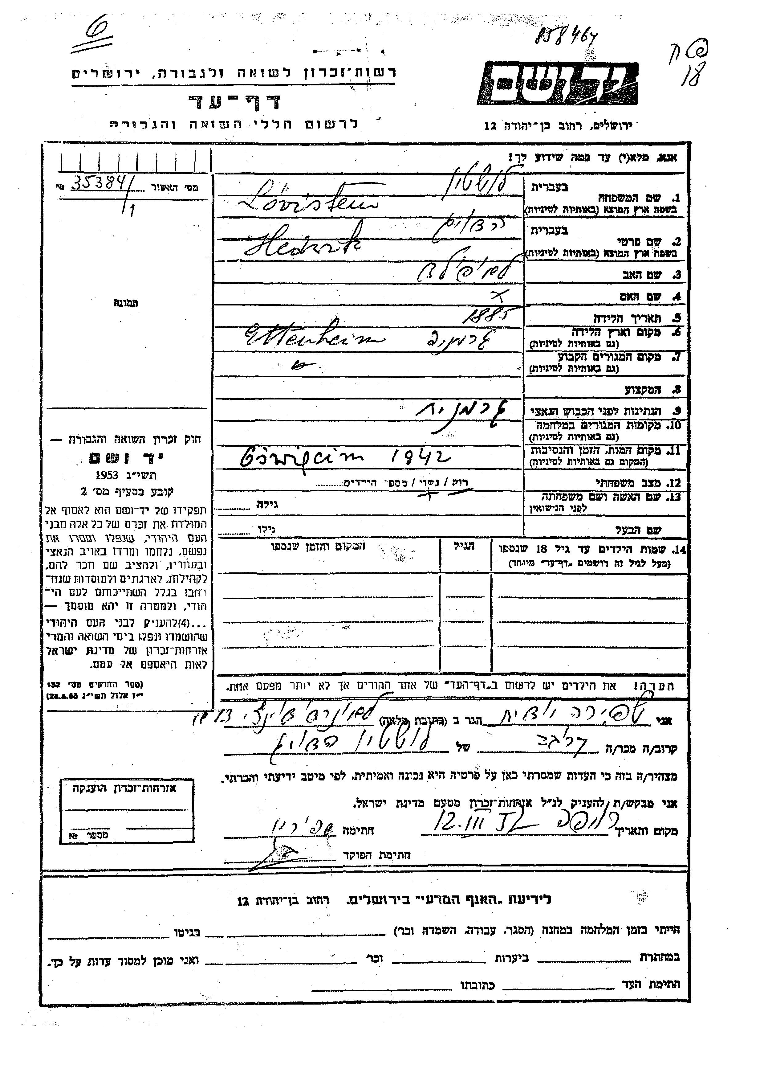 Yad Vashem - Pages of Testimony Names Memorial Collection